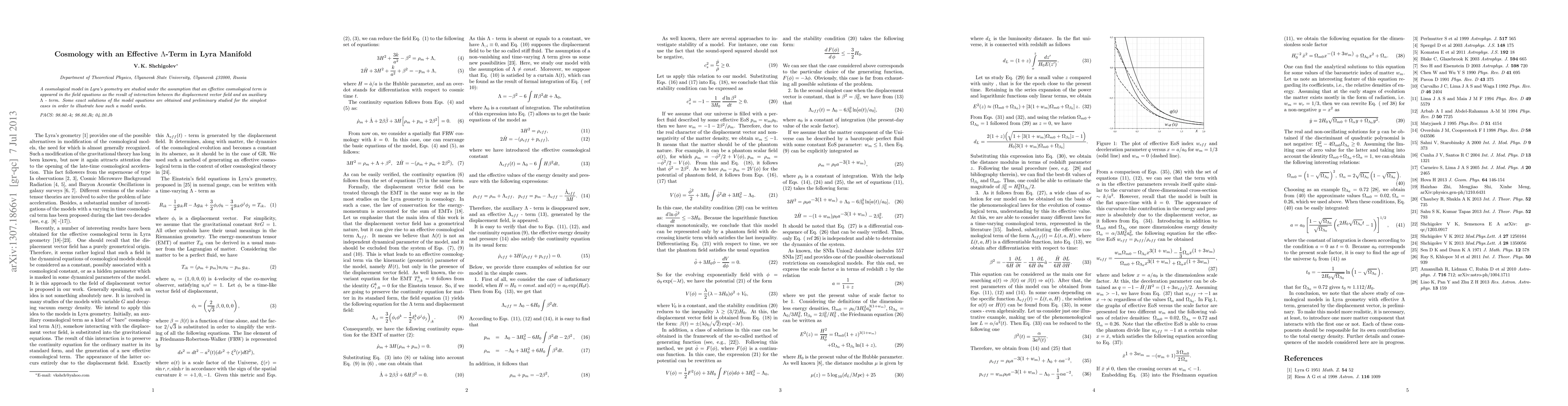 This paper explores a cosmological model in Lyra geometry where an effective cosmological term emerges due to interactions between the displacement vector field and an auxiliary Λ-term. Preliminary exact solutions are derived to demonstrate the functioning of this model.