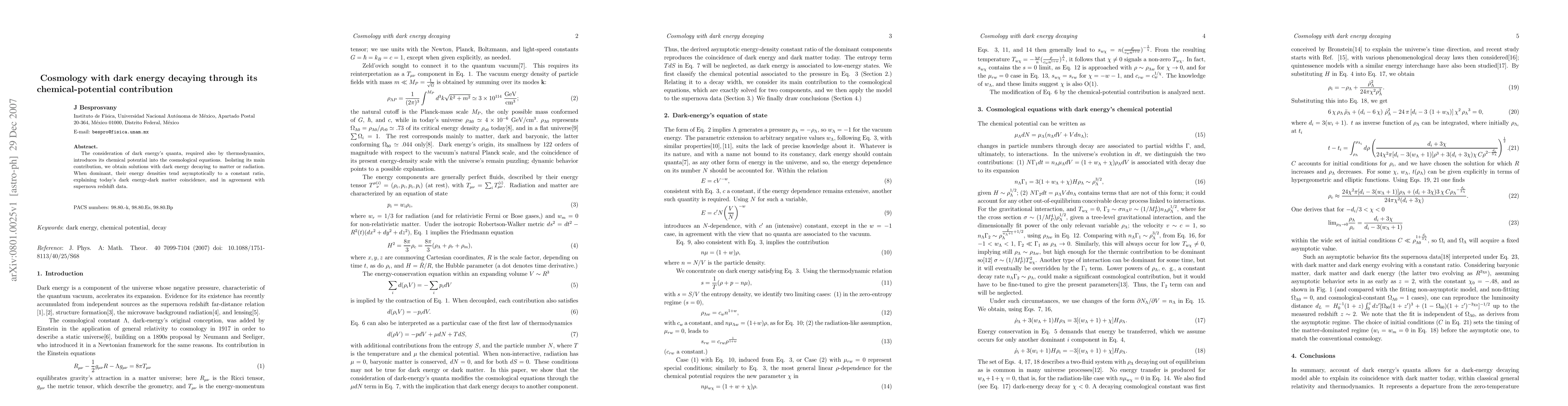The consideration of dark energy's quanta, required also by thermodynamics, introduces its chemical potential into the cosmological equations. Isolating its main contribution, we obtain solutions with dark energy decaying to matter or radiation. When dominant, their energy densities tend asymptotically to a constant ratio, explaining today's dark energy-dark matter coincidence, and in agreement with supernova redshift data.