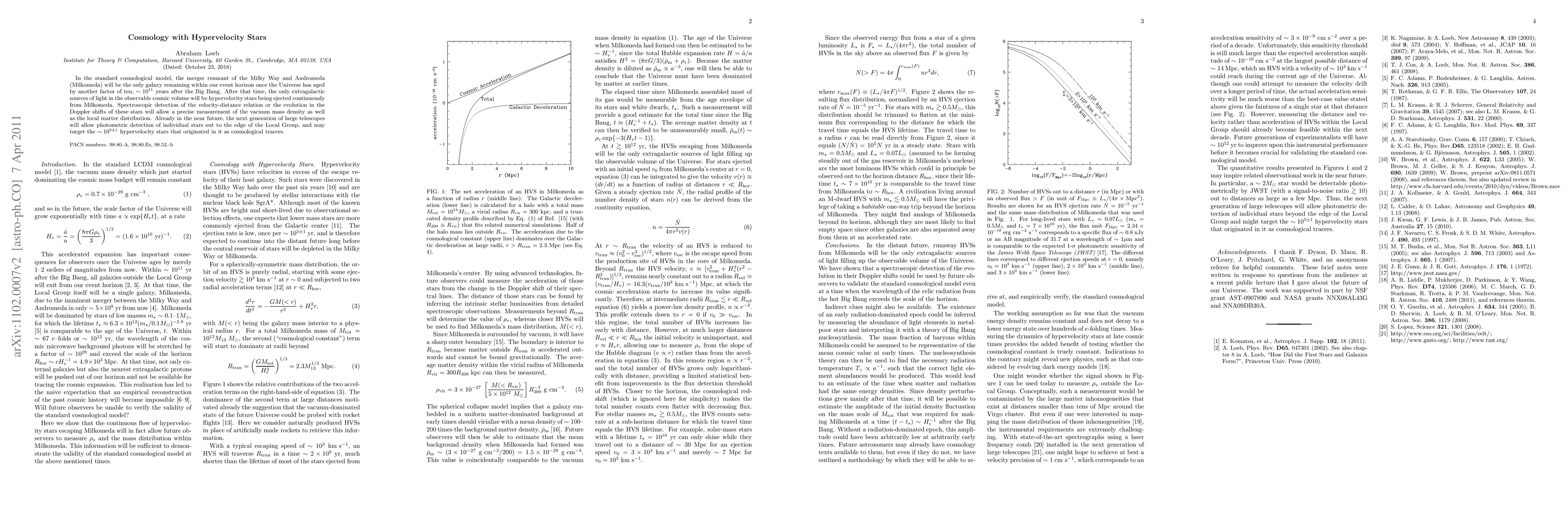 In the standard cosmological model, the merger remnant of the Milky Way and Andromeda (Milkomeda) will be the only galaxy remaining within our event horizon once the Universe has aged by another factor of ten, ~10^{11} years after the Big Bang. After that time, the only extragalactic sources of light in the observable cosmic volume will be hypervelocity stars being ejected continuously from Milkomeda. Spectroscopic detection of the velocity-distance relation or the evolution in the Doppler shifts of these stars will allow a precise measurement of the vacuum mass density as well as the local matter distribution. Already in the near future, the next generation of large telescopes will allow photometric detection of individual stars out to the edge of the Local Group, and may target the ~10^{5+-1} hypervelocity stars that originated in it as cosmological tracers.