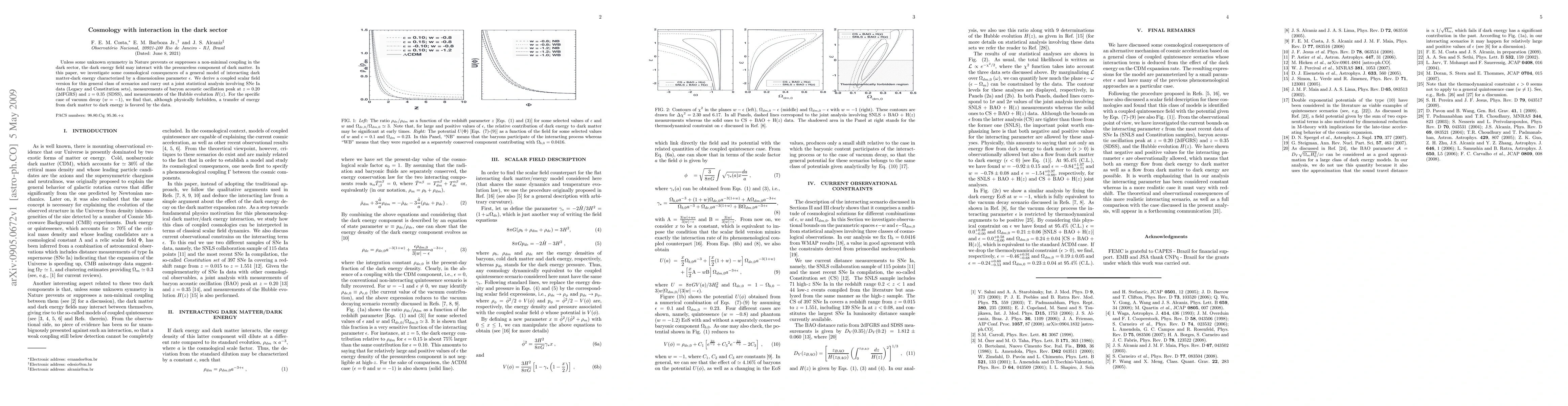 Unless some unknown symmetry in Nature prevents or suppresses a non-minimal coupling in the dark sector, the dark energy field may interact with the pressureless component of dark matter. In this paper, we investigate some cosmological consequences of a general model of interacting dark matter-dark energy characterized by a dimensionless parameter $\epsilon$. We derive a coupled scalar field version for this general class of scenarios and carry out a joint statistical analysis involving SNe Ia data ({Legacy} and {Constitution} sets), measurements of baryon acoustic oscillation peak at $z = 0.20$ (2dFGRS) and $z = 0.35$ (SDSS), and measurements of the Hubble evolution $H(z)$. For the specific case of vacuum decay ($w = -1$), we find that, although physically forbidden, a transfer of energy from dark matter to dark energy is favored by the data.