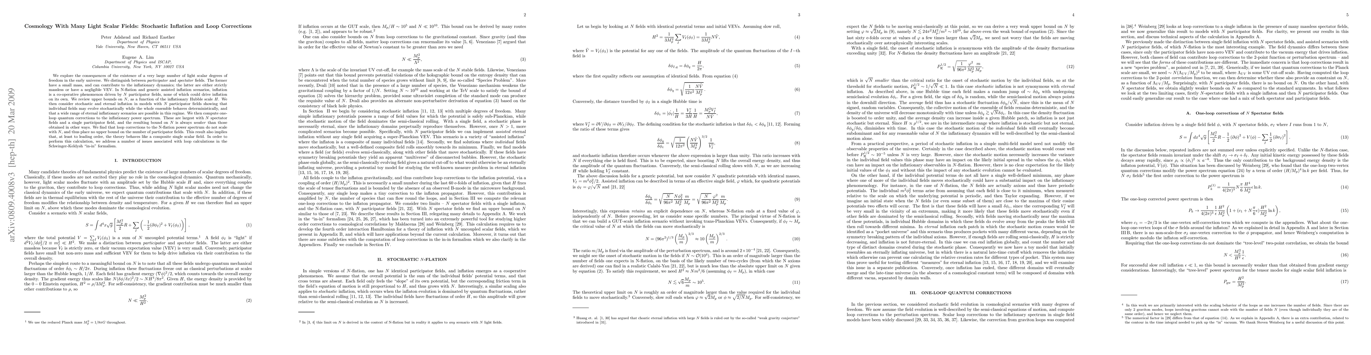 We explore the consequences of the existence of a very large number of light scalar degrees of freedom in the early universe. We distinguish between participator and spectator fields. The former have a small mass, and can contribute to the inflationary dynamics; the latter are either strictly massless or have a negligible VEV. In N-flation and generic assisted inflation scenarios, inflation is a co-operative phenomenon driven by N participator fields, none of which could drive inflation on their own. We review upper bounds on N, as a function of the inflationary Hubble scale H. We then consider stochastic and eternal inflation in models with N participator fields showing that individual fields may evolve stochastically while the whole ensemble behaves deterministically, and that a wide range of eternal inflationary scenarios are possible in this regime. We then compute one-loop quantum corrections to the inflationary power spectrum. These are largest with N spectator fields and a single participator field, and the resulting bound on N is always weaker than those obtained in other ways. We find that loop corrections to the N-flation power spectrum do not scale with N, and thus place no upper bound on the number of participator fields. This result also implies that, at least to leading order, the theory behaves like a composite single scalar field. In order to perform this calculation, we address a number of issues associated with loop calculations in the Schwinger-Keldysh "in-in" formalism.