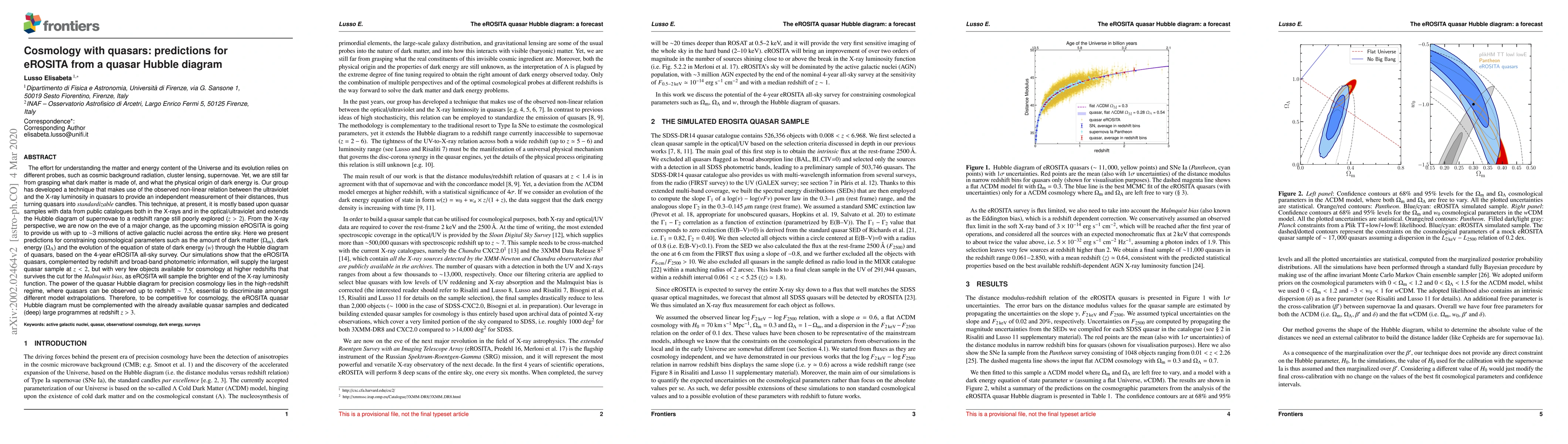 Our group has developed a technique that makes use of the observed non-linear relation between the ultraviolet and the X-ray luminosity in quasars to provide an independent measurement of their distances, thus turning quasars into standardizable candles. This technique, at present, it is mostly based upon quasar samples with data from public catalogues both in the X-rays and in the optical/ultraviolet and extends the Hubble diagram of supernovae to a redshift range still poorly explored (z>2). From the X-ray perspective, we are now on the eve of a major change, as the upcoming mission eROSITA is going to provide us with up to ~3 millions of active galactic nuclei across the entire sky. Here we present predictions for constraining cosmological parameters such as the amount of dark matter ($\Omega_{\rm m}$), dark energy ($\Omega_\Lambda$) and the evolution of the equation of state of dark energy ($w$) through the Hubble diagram of quasars, based on the 4-year eROSITA all-sky survey. Our simulations show that the eROSITA quasars, complemented by redshift and broad-band photometric information, will supply the largest quasar sample at z<2, but with very few objects available for cosmology at higher redshifts that survives the cut for the Malmquist bias, as eROSITA will sample the brighter end of the X-ray luminosity function. The power of the quasar Hubble diagram for precision cosmology lies in the high-redshift regime, where quasars can be observed up to redshift ~7.5, essential to discriminate amongst different model extrapolations. Therefore, to be competitive for cosmology, the eROSITA quasar Hubble diagram must be complemented with the already available quasar samples and dedicated (deep) large programmes at redshift z>3.