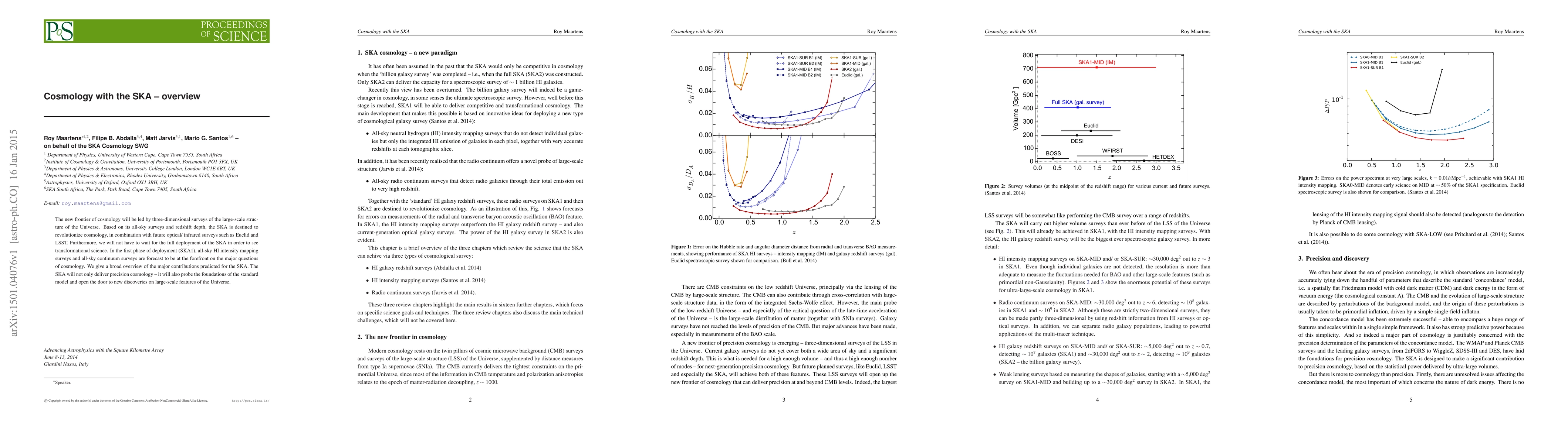 The SKA is set to revolutionize cosmology through three-dimensional surveys of the Universe's large-scale structure, offering unprecedented insights and precision. Even in its initial phase, SKA1 will lead to groundbreaking discoveries in cosmology and probe the foundations of the standard model.