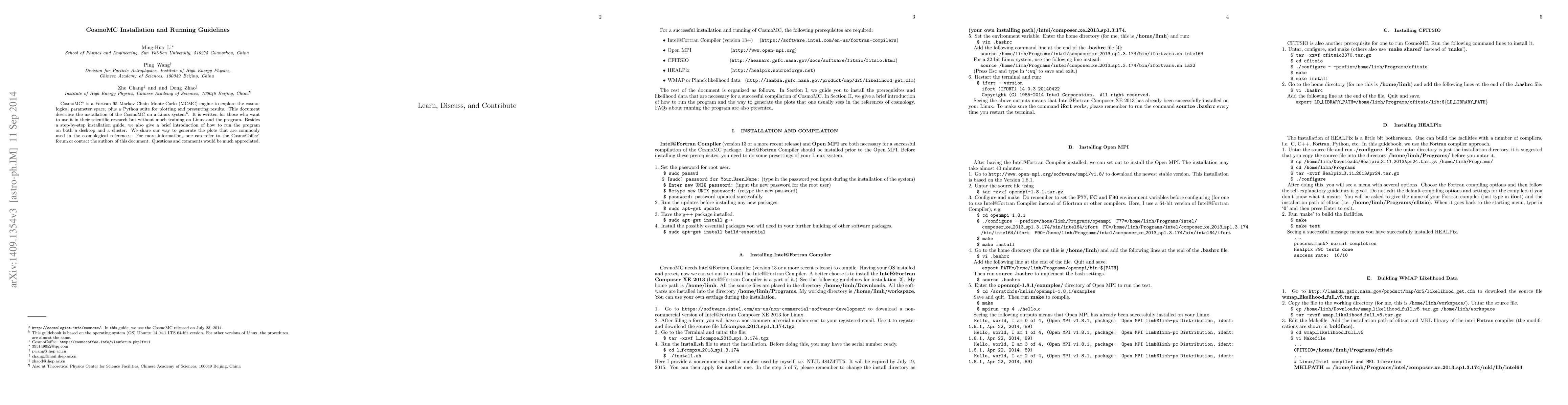 This paper provides a step-by-step guide to installing and running CosmoMC, a Fortran 95 MCMC engine for exploring cosmological parameters, on a Linux system. It offers a brief introduction to generating commonly used plots in cosmology.