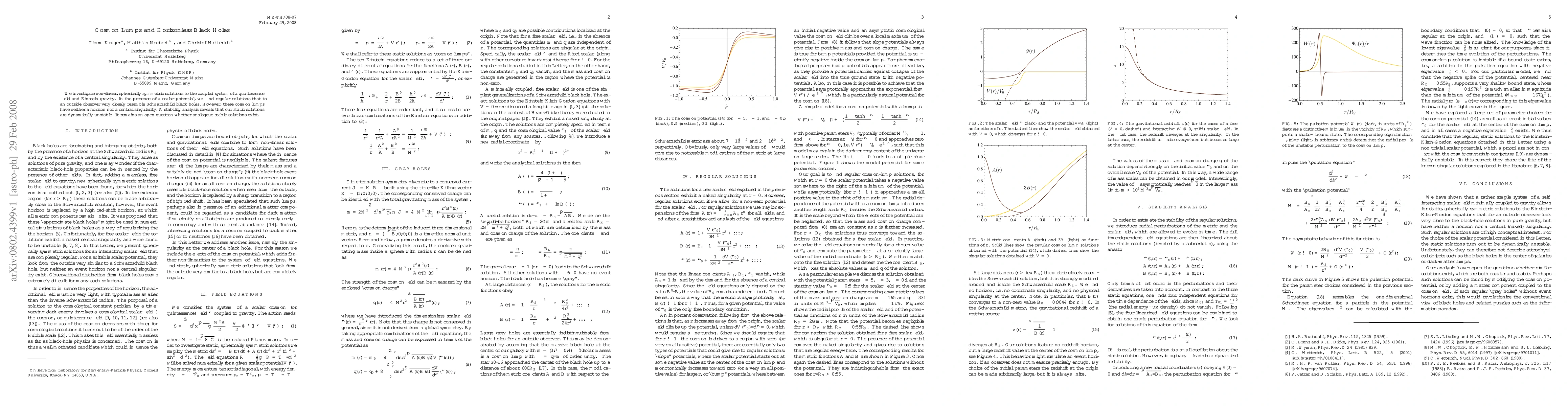We investigate non-linear, spherically symmetric solutions to the coupled system of a quintessence field and Einstein gravity. In the presence of a scalar potential, we find regular solutions that to an outside observer very closely resemble Schwarzschild black holes. However, these cosmon lumps have neither a horizon nor a central singularity. A stability analysis reveals that our static solutions are dynamically unstable. It remains an open question whether analogous stable solutions exist.