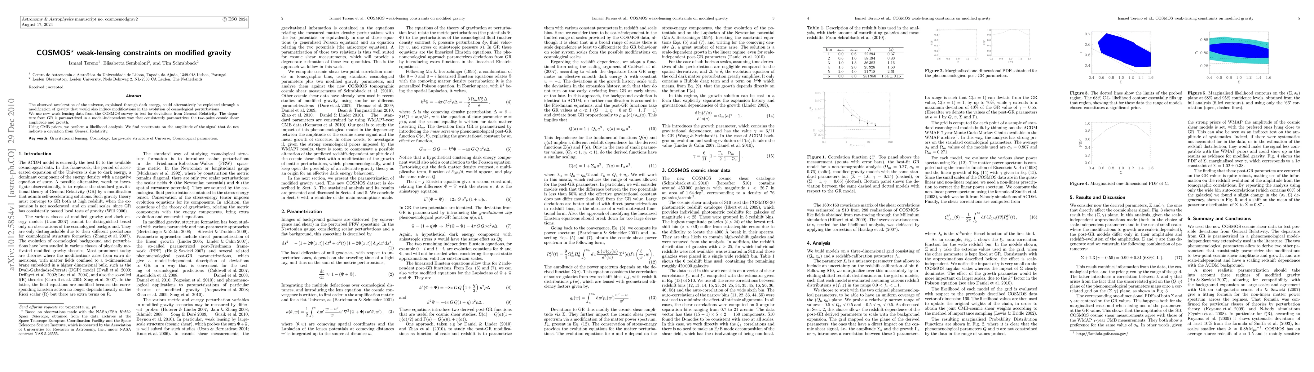 The COSMOS weak-lensing survey provides new data to test modifications of gravity that could explain the universe's acceleration. The analysis finds no significant deviation from General Relativity, indicating that current data does not support alternative gravity models.