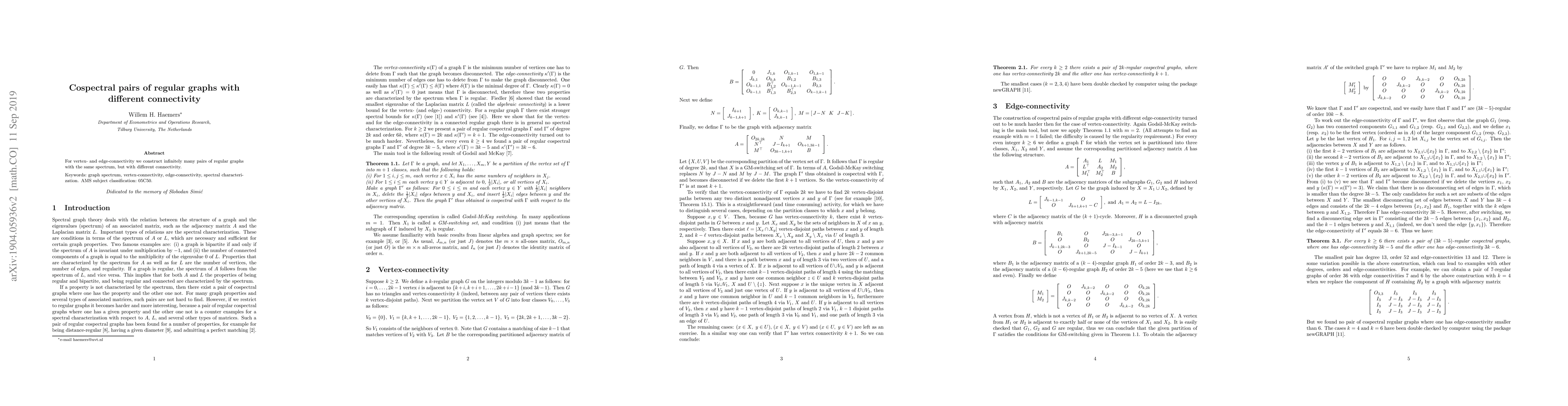 For vertex and edge connectivity we construct infinitely many pairs of regular graphs with the same spectrum, but with different connectivity.