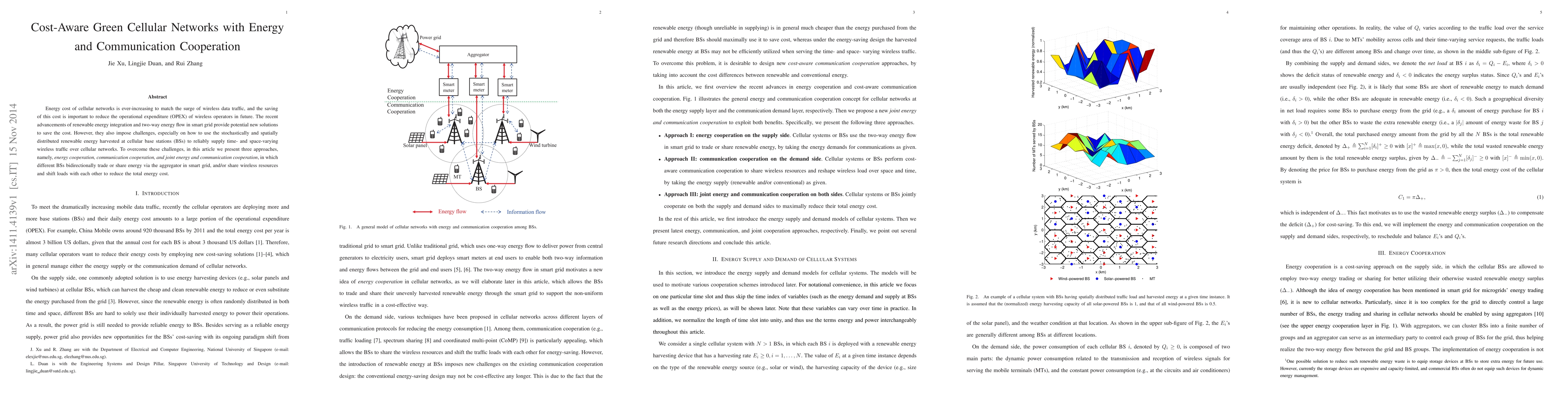 This paper proposes three approaches—energy cooperation, communication cooperation, and joint energy and communication cooperation—to reduce the operational expenditure of cellular networks by leveraging renewable energy and resource sharing among base stations in smart grid environments. The goal is to efficiently utilize stochastically distributed renewable energy to meet time- and space-varying wireless traffic demands.