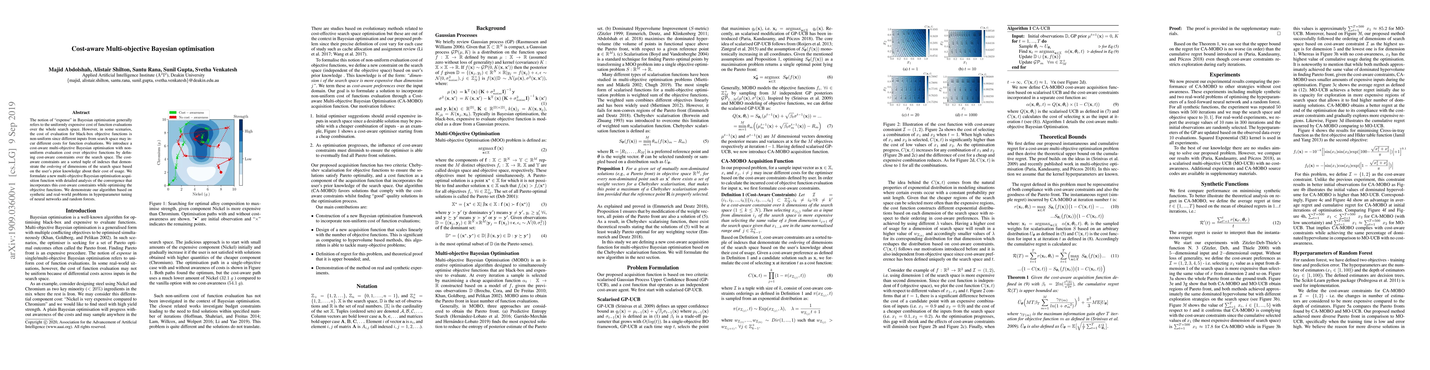 This paper proposes a cost-aware multi-objective Bayesian optimisation method that accounts for non-uniform evaluation costs of different inputs. It introduces a new acquisition function incorporating cost-aware constraints, demonstrating its effectiveness in hyperparameter tuning for neural networks and random forests.