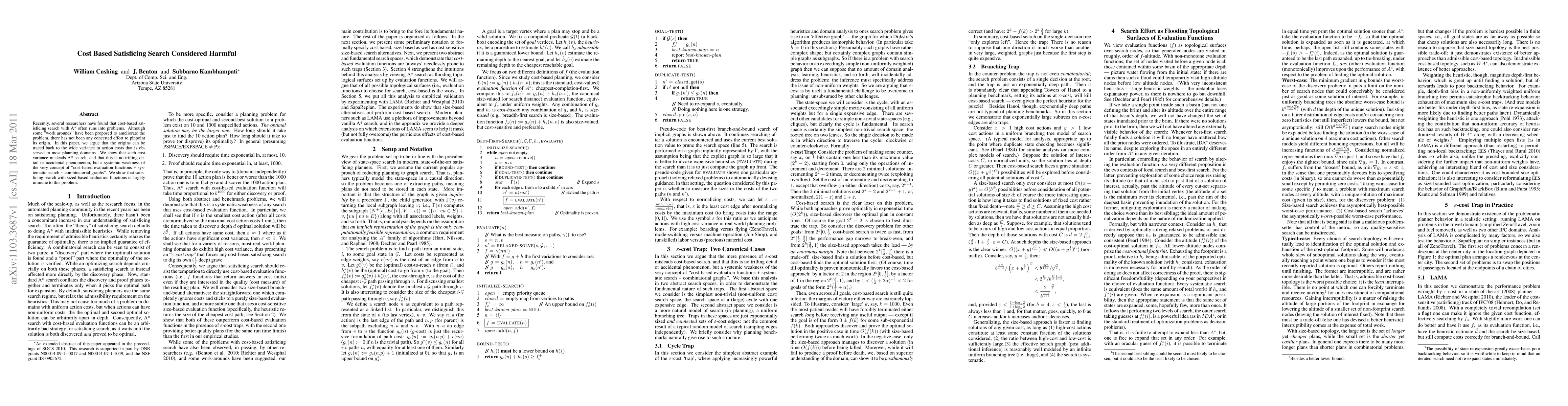 Recently, several researchers have found that cost-based satisficing search with A* often runs into problems. Although some "work arounds" have been proposed to ameliorate the problem, there has not been any concerted effort to pinpoint its origin. In this paper, we argue that the origins can be traced back to the wide variance in action costs that is observed in most planning domains. We show that such cost variance misleads A* search, and that this is no trifling detail or accidental phenomenon, but a systemic weakness of the very concept of "cost-based evaluation functions + systematic search + combinatorial graphs". We show that satisficing search with sized-based evaluation functions is largely immune to this problem.