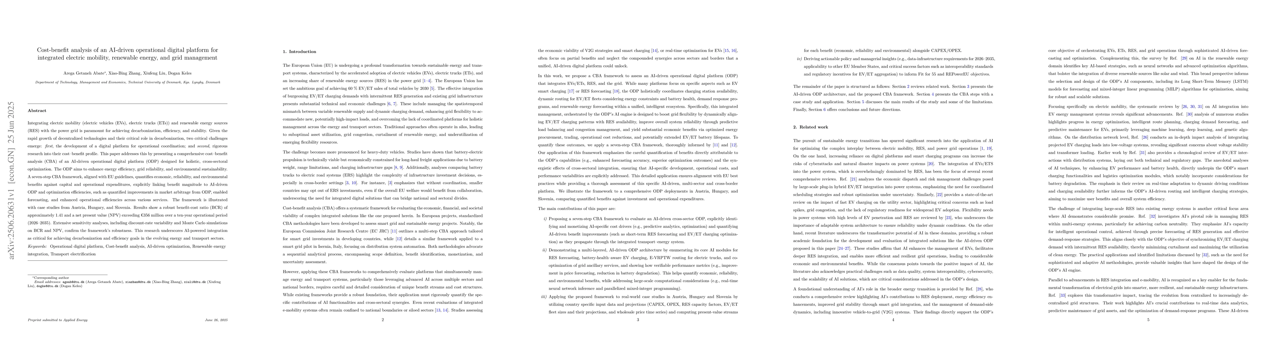 Integrating electric mobility (electric vehicles (EVs), electric trucks (ETs)) and renewable energy sources (RES) with the power grid is paramount for achieving decarbonization, efficiency, and stability. Given the rapid growth of decentralized technologies and their critical role in decarbonization, two critical challenges emerge: first, the development of a digital platform for operational coordination; and second, rigorous research into their cost-benefit profile. This paper addresses this by presenting a comprehensive cost-benefit analysis (CBA) of an AI-driven operational digital platform (ODP) designed for holistic, cross-sectoral optimization. The ODP aims to enhance energy efficiency, grid reliability, and environmental sustainability. A seven-step CBA framework, aligned with EU guidelines, quantifies economic, reliability, and environmental benefits against capital and operational expenditures, explicitly linking benefit magnitude to AI-driven ODP and optimization efficiencies, such as quantified improvements in market arbitrage from ODP, enabled forecasting, and enhanced operational efficiencies across various services.