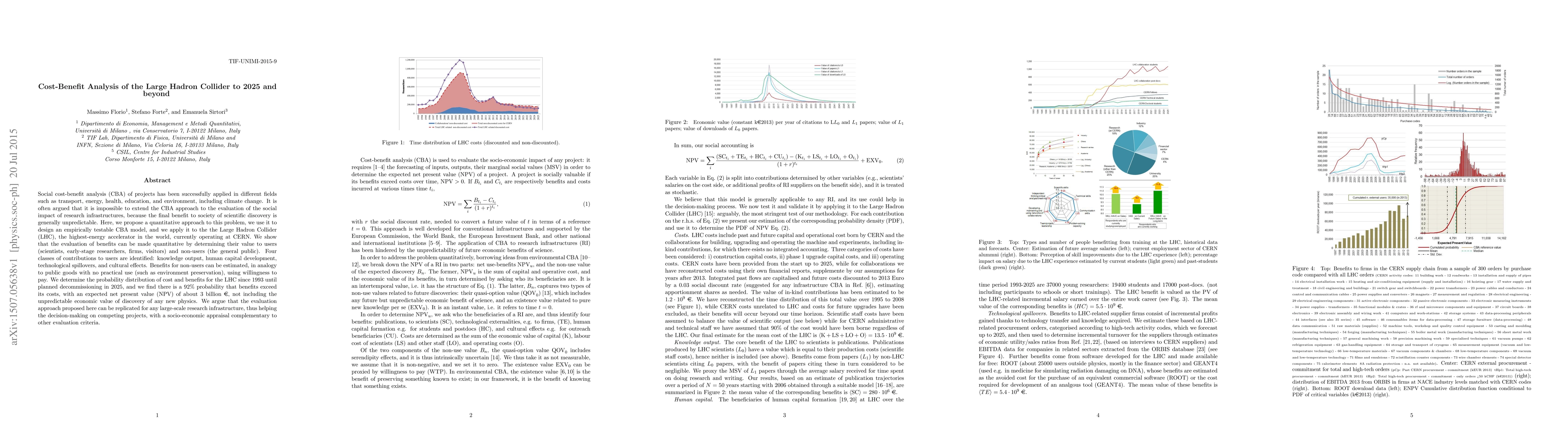 A cost-benefit analysis of the Large Hadron Collider from 1993 to 2025 found that benefits exceed costs with a 92% probability, yielding an expected net present value of approximately 3 billion euros.