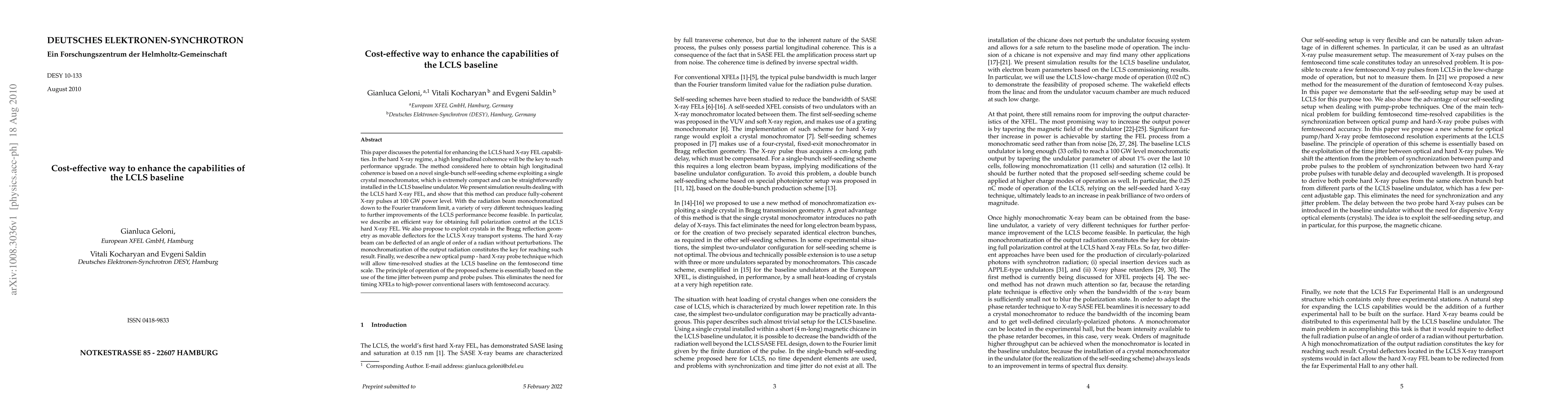 This paper discusses the potential for enhancing the LCLS hard X-ray FEL capabilities. In the hard X-ray regime, a high longitudinal coherence will be the key to such performance upgrade. The method considered here to obtain high longitudinal coherence is based on a novel single-bunch self-seeding scheme exploiting a single crystal monochromator, which is extremely compact and can be straightforwardly installed in the LCLS baseline undulator. We present simulation results dealing with the LCLS hard X-ray FEL, and show that this method can produce fully-coherent X-ray pulses at 100 GW power level. With the radiation beam monochromatized down to the Fourier transform limit, a variety of very different techniques leading to further improvements of the LCLS performance become feasible. In particular, we describe an efficient way for obtaining full polarization control at the LCLS hard X-ray FEL. We also propose to exploit crystals in the Bragg reflection geometry as movable deflectors for the LCLS X-ray transport systems. The hard X-ray beam can be deflected of an angle of order of a radian without perturbations. The monochromatization of the output radiation constitutes the key for reaching such result. Finally, we describe a new optical pump - hard X-ray probe technique which will allow time-resolved studies at the LCLS baseline on the femtosecond time scale. The principle of operation of the proposed scheme is essentially based on the use of the time jitter between pump and probe pulses. This eliminates the need for timing XFELs to high-power conventional lasers with femtosecond accuracy.