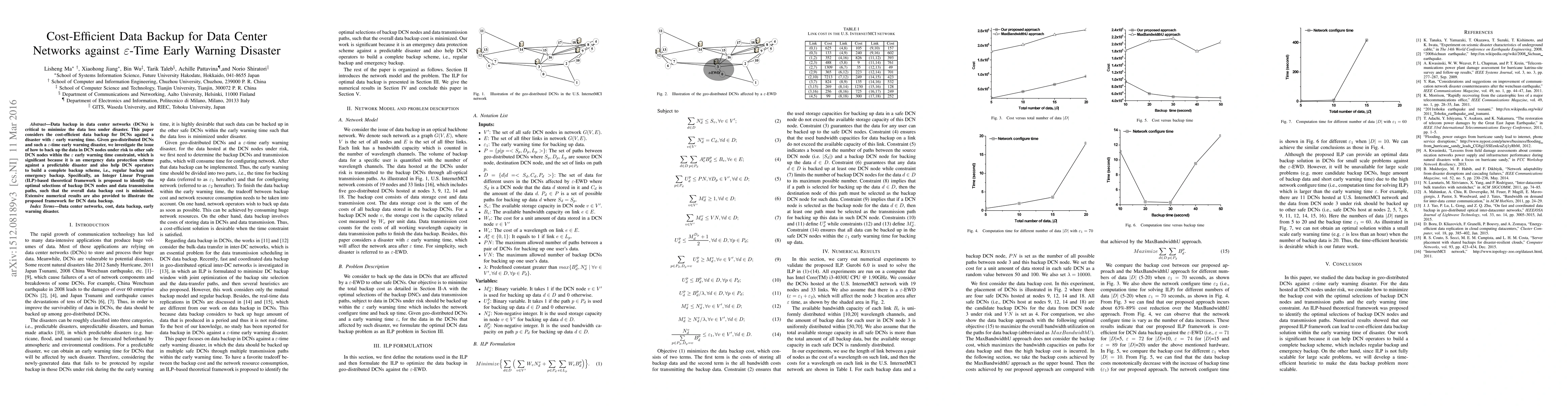 Data backup in data center networks (DCNs) is critical to minimize the data loss under disaster. This paper considers the cost-efficient data backup for DCNs against a disaster with $\varepsilon$ early warning time. Given geo-distributed DCNs and such a $\varepsilon$-time early warning disaster, we investigate the issue of how to back up the data in DCN nodes under risk to other safe DCN nodes within the $\varepsilon$ early warning time constraint, which is significant because it is an emergency data protection scheme against a predictable disaster and also help DCN operators to build a complete backup scheme, i.e., regular backup and emergency backup. Specifically, an Integer Linear Program (ILP)-based theoretical framework is proposed to identify the optimal selections of backup DCN nodes and data transmission paths, such that the overall data backup cost is minimized. Extensive numerical results are also provided to illustrate the proposed framework for DCN data backup.