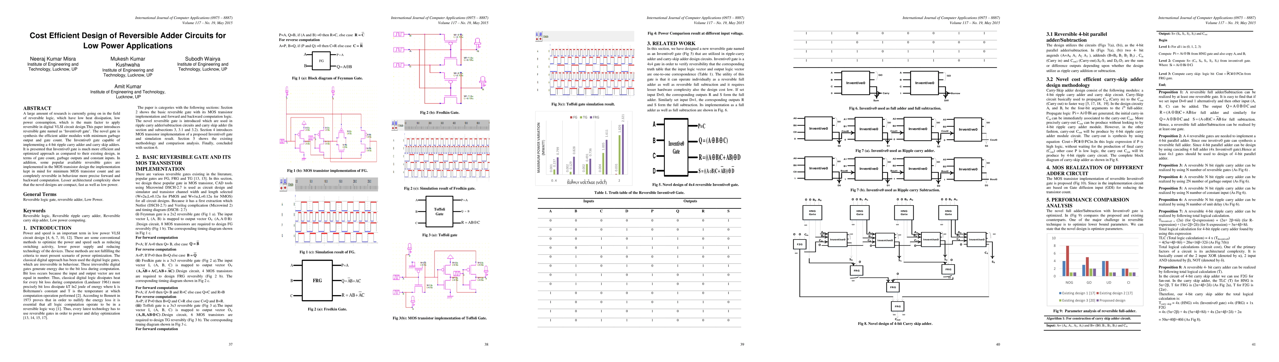 A large amount of research is currently going on in the field of reversible logic, which have low heat dissipation, low power consumption, which is the main factor to apply reversible in digital VLSI circuit design. This paper introduces reversible gate named as Inventive0 gate. The novel gate is synthesis the efficient adder modules with minimum garbage output and gate count. The Inventive0 gate capable of implementing a 4-bit ripple carry adder and carry skip adders.It is presented that Inventive0 gate is much more efficient and optimized approach as compared to their existing design, in terms of gate count, garbage outputs and constant inputs. In addition, some popular available reversible gates are implemented in the MOS transistor design the implementation kept in mind for minimum MOS transistor count and are completely reversible in behavior more precise forward and backward computation. Lesser architectural complexity show that the novel designs are compact, fast as well as low power.