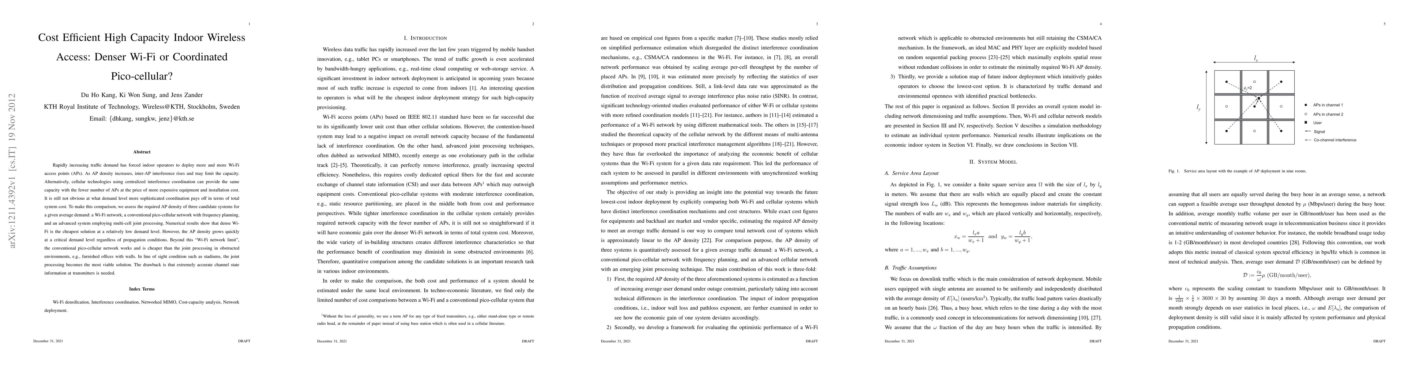 Rapidly increasing traffic demand has forced indoor operators to deploy more and more Wi-Fi access points (APs). As AP density increases, inter-AP interference rises and may limit the capacity. Alternatively, cellular technologies using centralized interference coordination can provide the same capacity with the fewer number of APs at the price of more expensive equipment and installation cost. It is still not obvious at what demand level more sophisticated coordination pays off in terms of total system cost. To make this comparison, we assess the required AP density of three candidate systems for a given average demand: a Wi-Fi network, a conventional pico-cellular network with frequency planning, and an advanced system employing multi-cell joint processing. Numerical results show that dense Wi-Fi is the cheapest solution at a relatively low demand level. However, the AP density grows quickly at a critical demand level regardless of propagation conditions. Beyond this Wi-Fi network limit, the conventional pico-cellular network works and is cheaper than the joint processing in obstructed environments, e.g., furnished offices with walls. In line of sight condition such as stadiums, the joint processing becomes the most viable solution. The drawback is that extremely accurate channel state information at transmitters is needed.