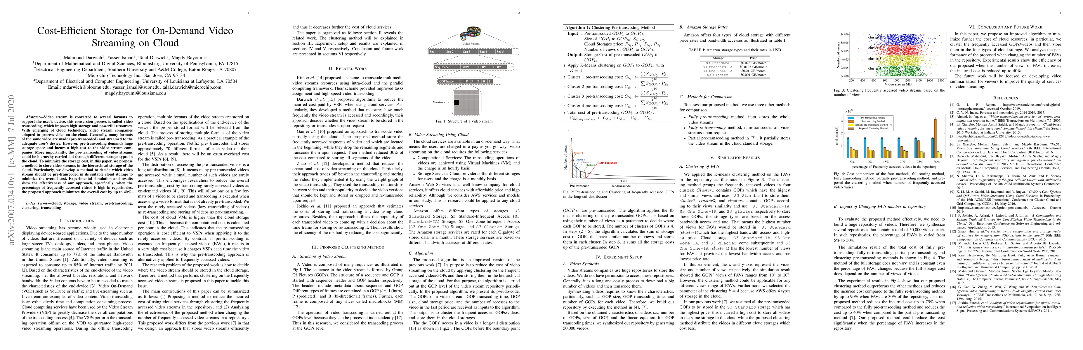 This paper proposes a cost-efficient method for storing video streams in cloud hierarchical storage, optimizing pre-transcoding to minimize storage costs. Experimental results demonstrate that the approach can reduce overall costs by up to 40% when frequently accessed videos are prevalent.
