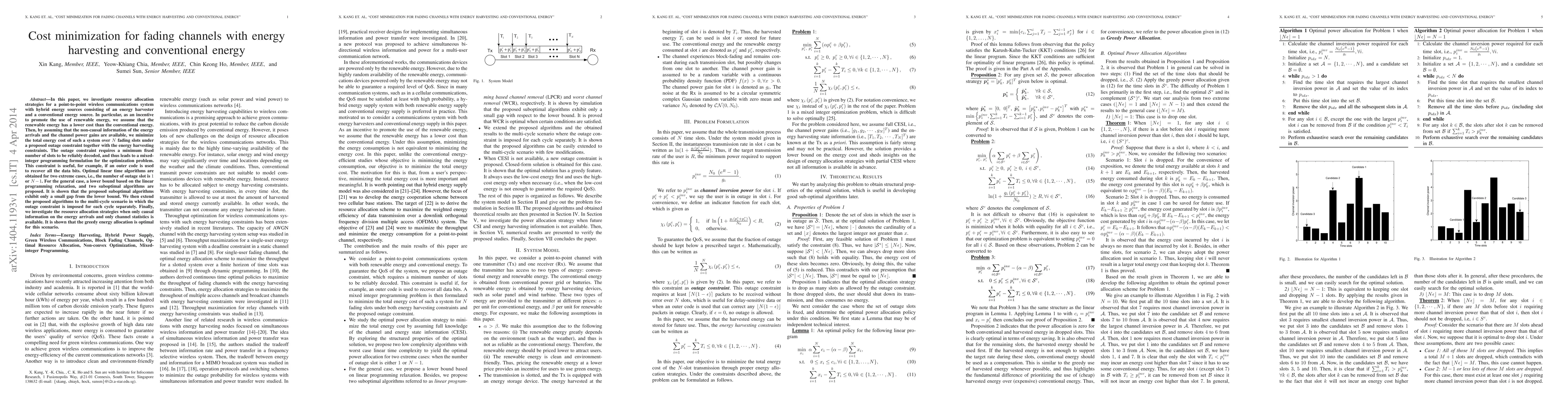 This paper explores resource allocation strategies for a wireless system with hybrid energy sources, aiming to minimize total energy cost under an outage constraint. Optimal linear time algorithms are developed for extreme cases, with suboptimal algorithms for general scenarios, and the study extends to multi-cycle scenarios and causal information settings.