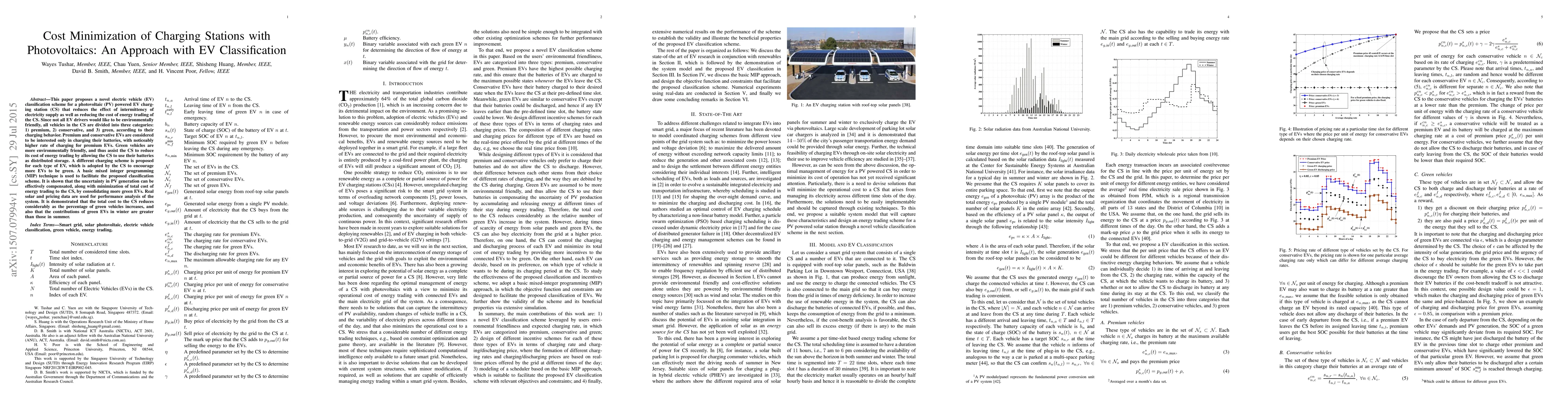 This paper introduces an EV classification scheme for PV-powered charging stations, categorizing EVs into premium, conservative, and green types to minimize energy trading costs. Green EVs assist in reducing costs by acting as distributed storage, leading to significant cost reductions as their percentage increases.