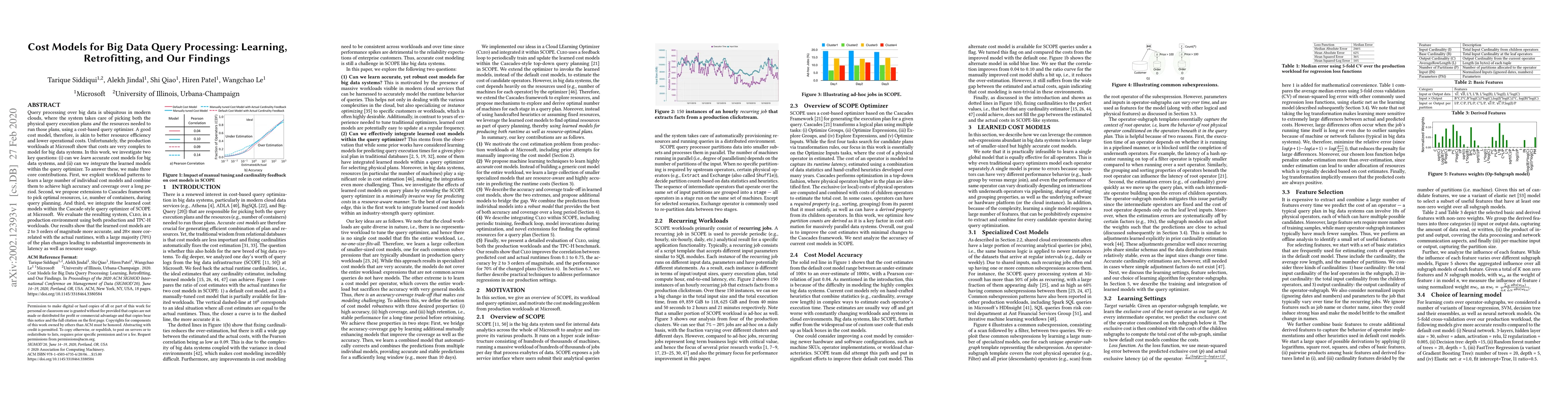 The paper explores learning accurate cost models for big data query processing to enhance resource efficiency. It combines learned models to achieve high accuracy, extends the Cascades framework for optimal resource selection, and integrates these models into SCOPE's query optimizer. Evaluation in a production environment shows significant improvements in accuracy, latency, and resource usage.