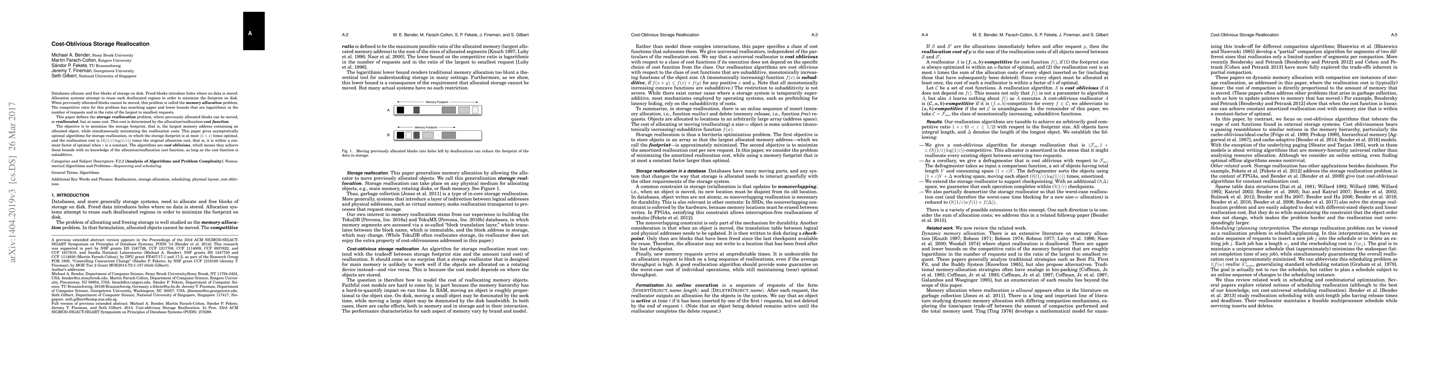 This paper introduces cost-oblivious algorithms for storage reallocation to minimize both the storage footprint and reallocation costs, achieving asymptotically optimal performance under subadditive cost functions without prior knowledge of the cost function.