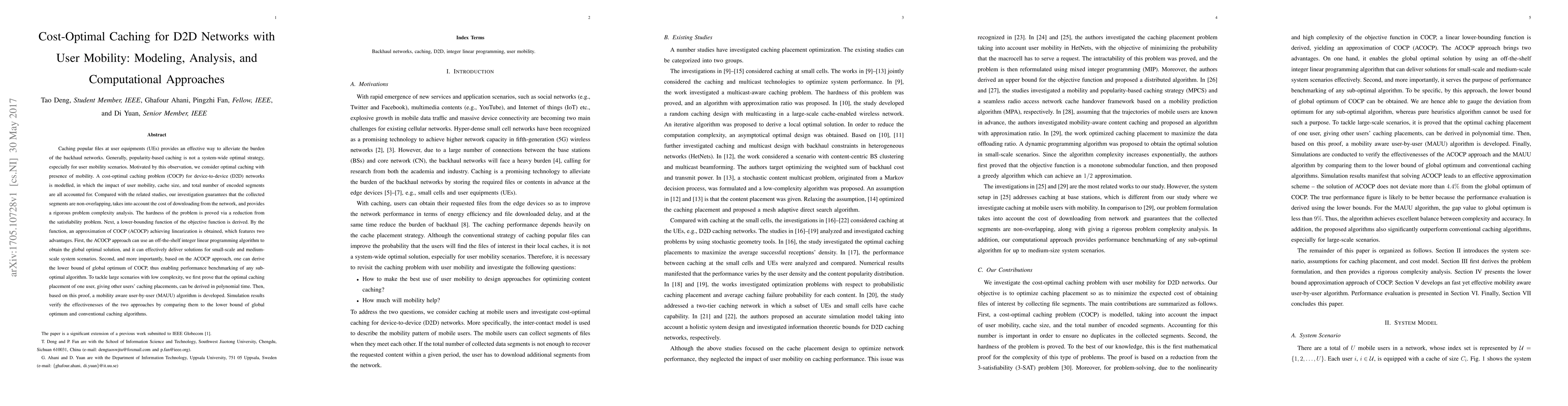 This paper develops a cost-optimal caching algorithm for D2D networks with user mobility, providing a lower bound on global optimum and an efficient approach to tackle large scenarios.
