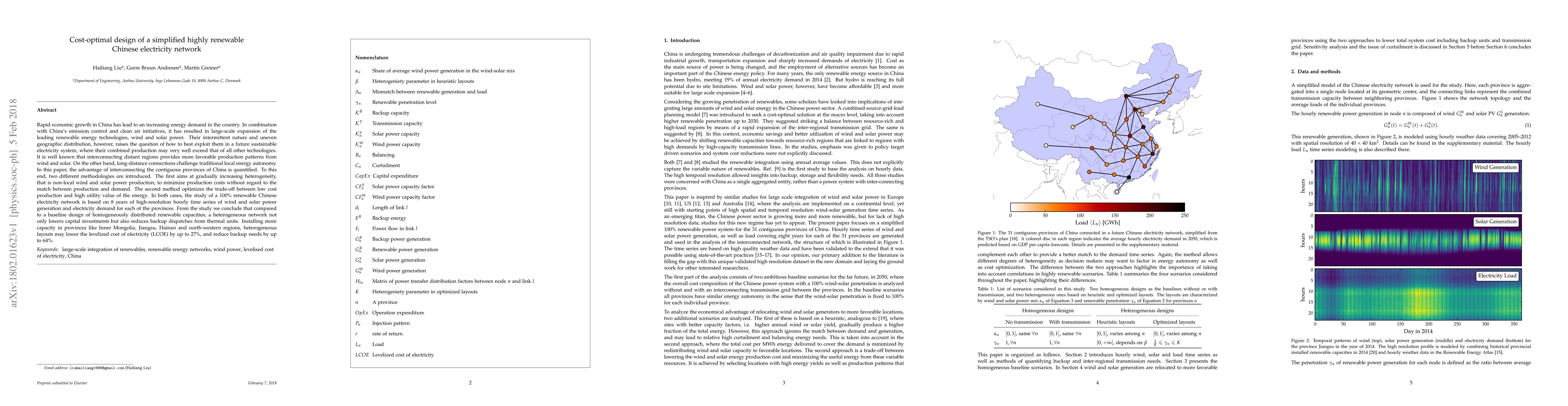 This paper explores the cost-optimal design of a highly renewable Chinese electricity network, emphasizing the benefits of interconnecting provinces to optimize wind and solar power usage. It finds that a heterogeneous network layout can reduce capital investments and backup dispatches by up to 27% and 64%, respectively, compared to a homogeneous distribution.