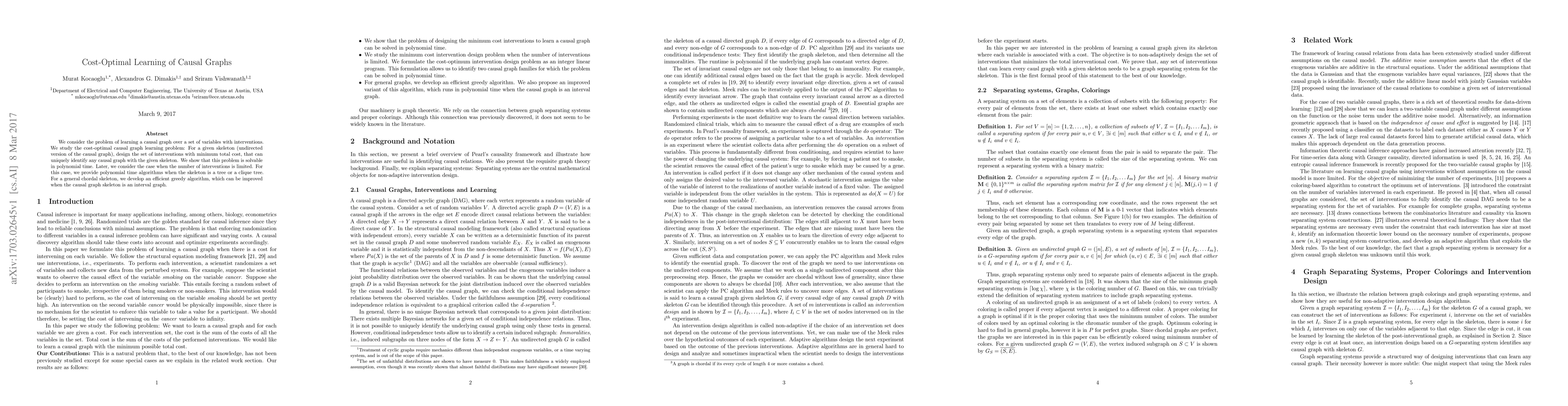 This research paper presents a cost-optimal method for learning causal graphs with interventions, showing that it can be solved in polynomial time. It also provides efficient algorithms for specific types of skeletons.