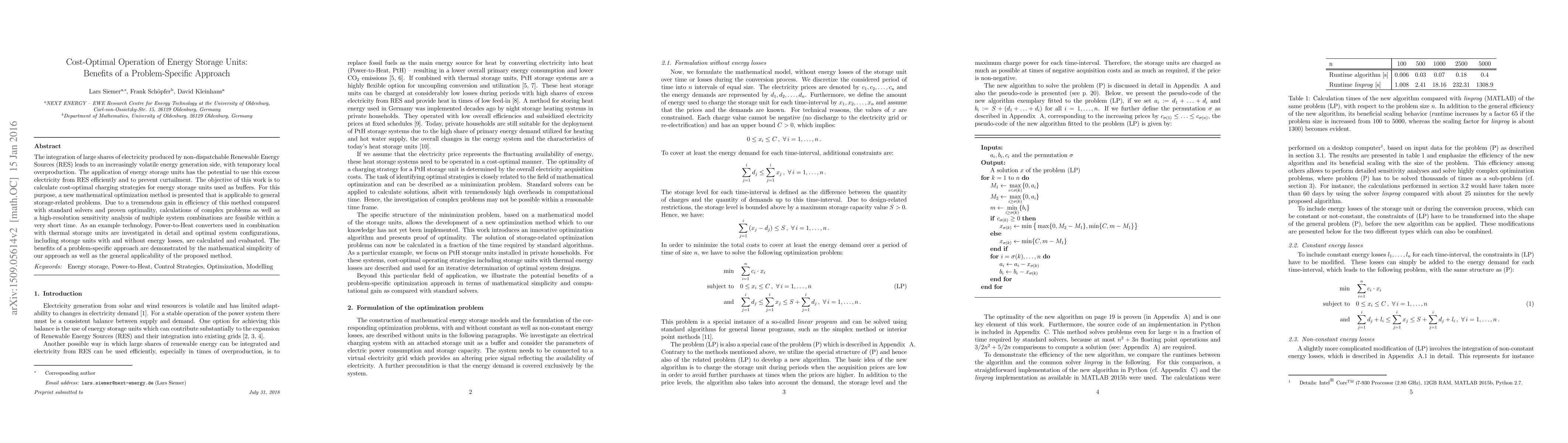 The integration of large shares of electricity produced by non-dispatchable Renewable Energy Sources (RES) leads to an increasingly volatile energy generation side, with temporary local overproduction. The application of energy storage units has the potential to use this excess electricity from RES efficiently and to prevent curtailment. The objective of this work is to calculate cost-optimal charging strategies for energy storage units used as buffers. For this purpose, a new mathematical optimization method is presented that is applicable to general storage-related problems. Due to a tremendous gain in efficiency of this method compared with standard solvers and proven optimality, calculations of complex problems as well as a high-resolution sensitivity analysis of multiple system combinations are feasible within a very short time. As an example technology, Power-to-Heat converters used in combination with thermal storage units are investigated in detail and optimal system configurations, including storage units with and without energy losses, are calculated and evaluated. The benefits of a problem-specific approach are demonstrated by the mathematical simplicity of our approach as well as the general applicability of the proposed method.