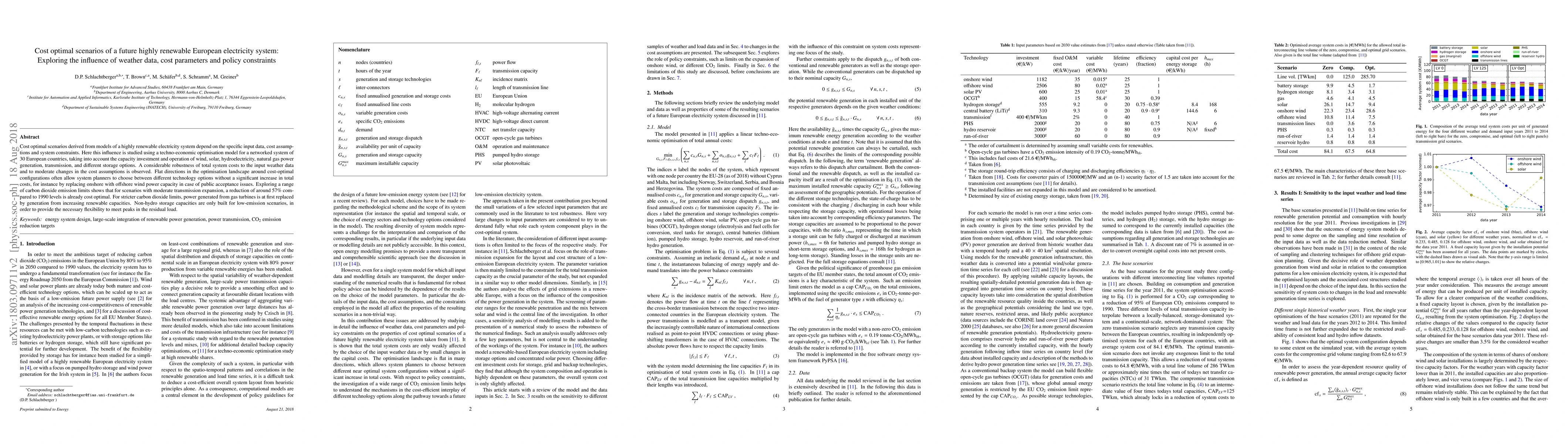 This study explores cost optimal scenarios for a highly renewable European electricity system using a techno-economic optimization model, revealing robustness in total system costs despite variations in weather data and cost parameters. It finds that moderate changes in technology options, like switching onshore to offshore wind, do not significantly increase costs, and achieving a 57% reduction in CO2 emissions compared to 1990 levels is cost-optimal for moderate transmission expansion.