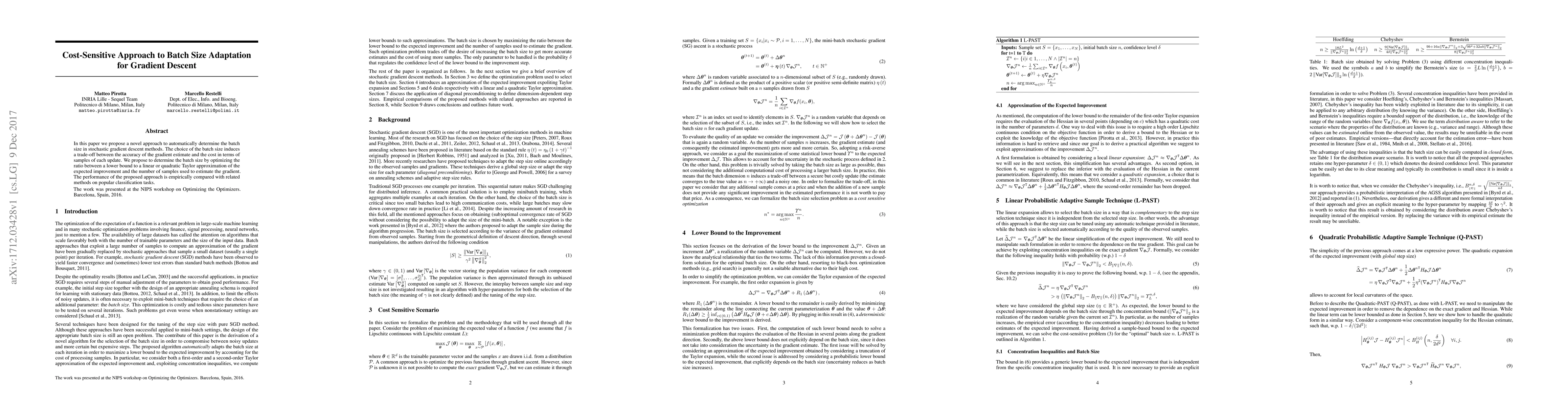 This paper introduces a cost-sensitive method for dynamically adjusting batch size in stochastic gradient descent, optimizing the trade-off between gradient estimate accuracy and computational cost. Empirical results show improved performance compared to existing methods on classification tasks.