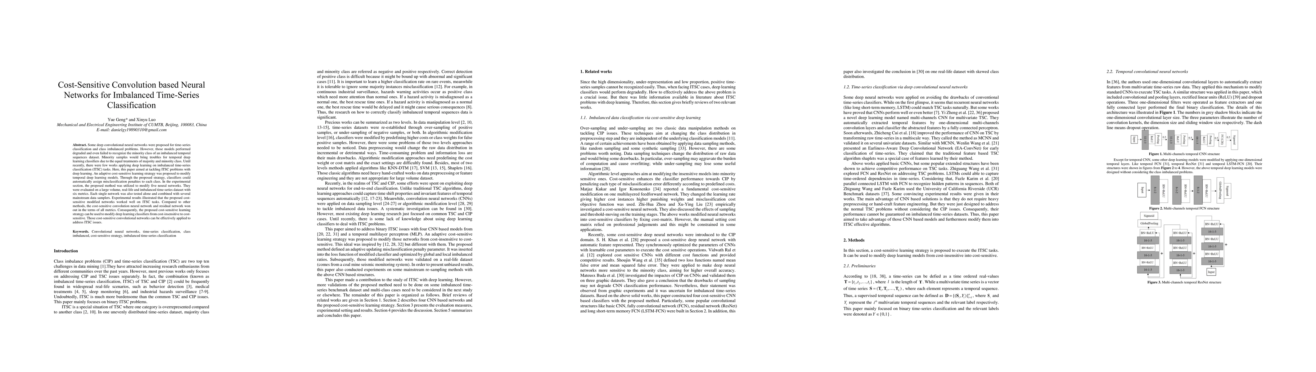 This paper proposes an adaptive cost-sensitive learning strategy to modify deep convolutional neural networks for imbalanced time-series classification (ITSC). The strategy enables classifiers to assign misclassification penalties to each class, improving minority class recognition. Experimental results show that the modified networks outperform other methods in addressing ITSC issues.