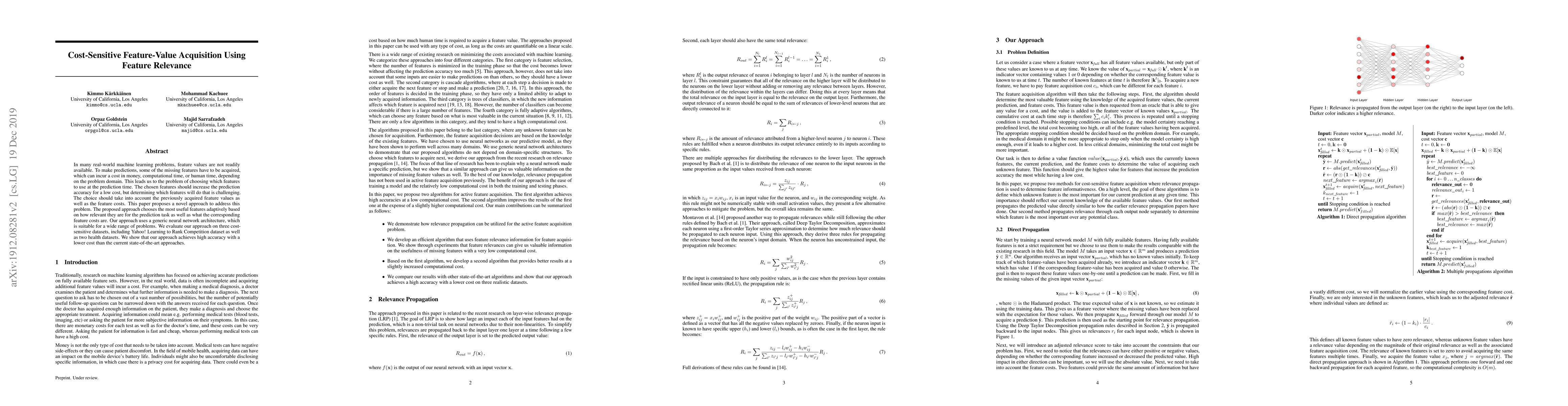 This paper proposes a novel adaptive method for selecting cost-sensitive features based on relevance for prediction tasks, using a generic neural network architecture. The approach achieves high prediction accuracy while minimizing costs, outperforming current state-of-the-art methods on three diverse datasets.