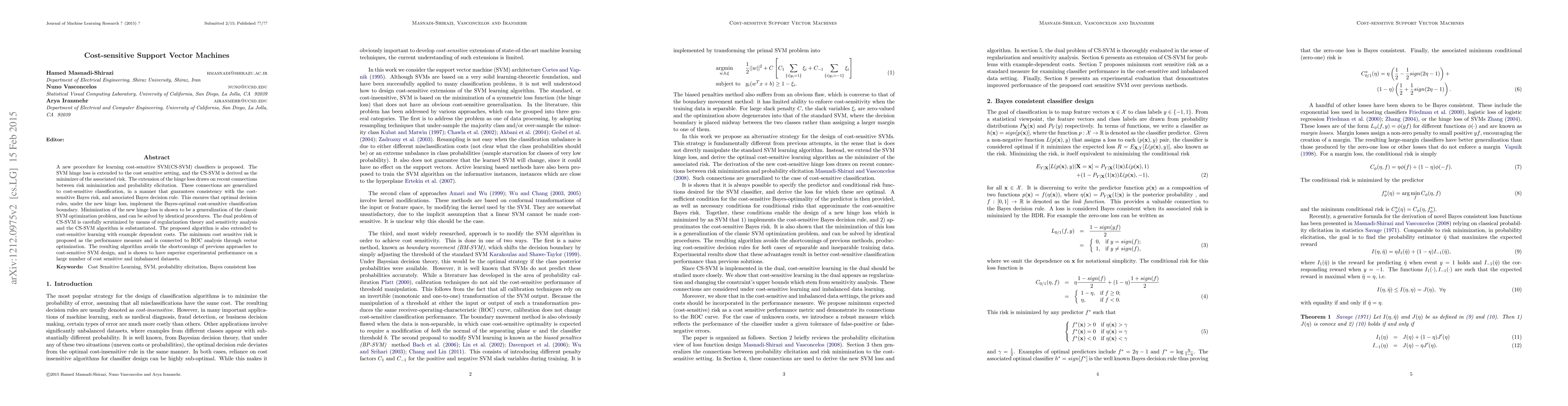 The paper proposes a new cost-sensitive SVM (CS-SVM) algorithm that extends the SVM hinge loss for cost-sensitive classification, ensuring consistency with cost-sensitive Bayes risk. The proposed algorithm outperforms previous methods and shows superior performance on imbalanced datasets.