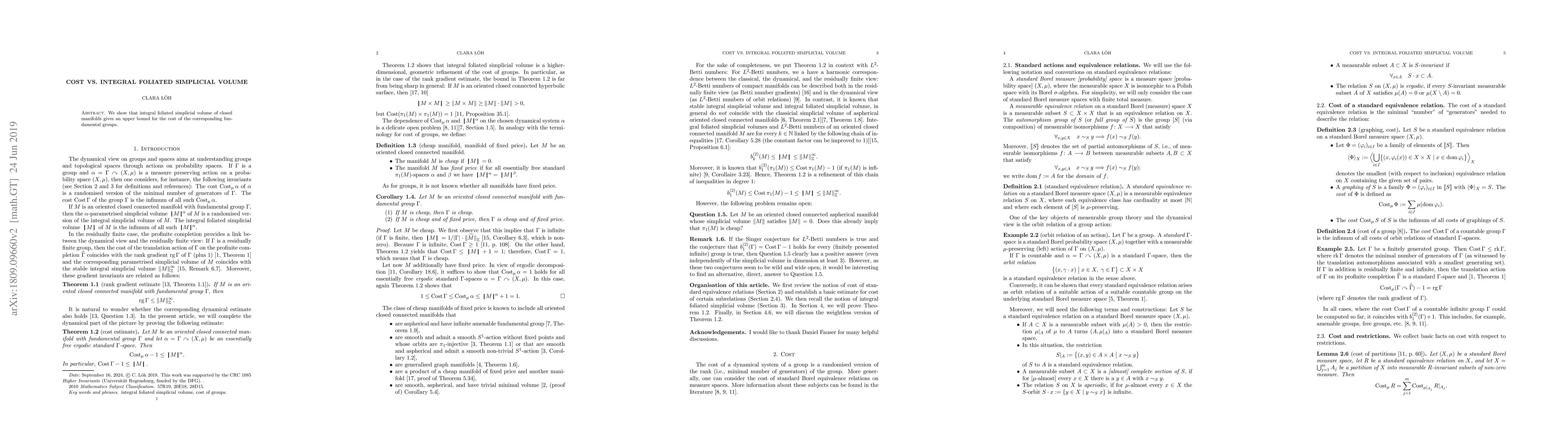 Summary: This paper demonstrates that the integral foliated simplicial volume of closed manifolds serves as an upper limit for the cost of their fundamental groups, providing a new perspective on group complexity.