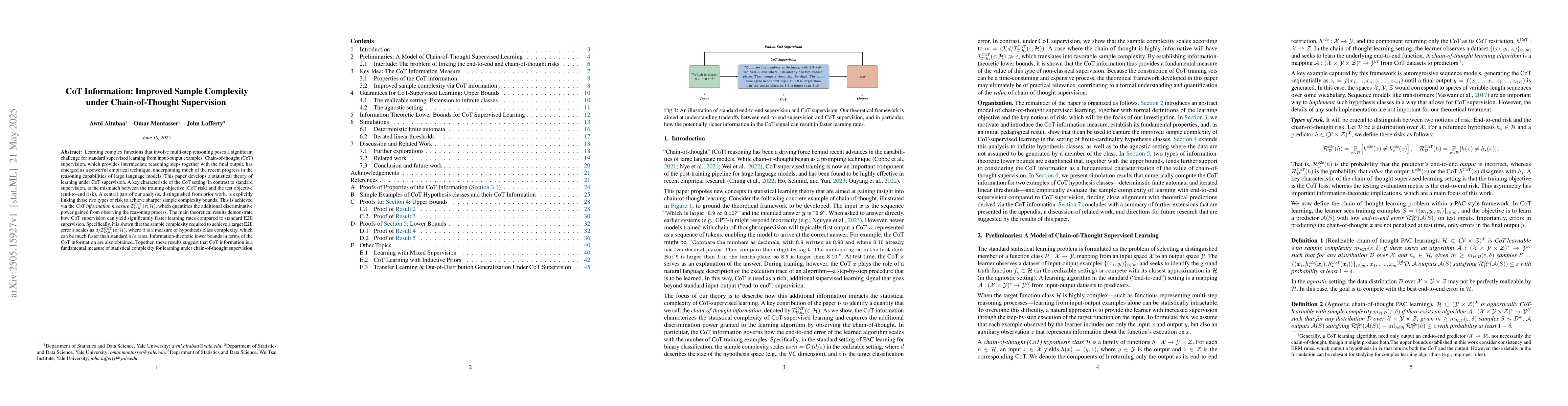 This research suggests that CoT information is a fundamental measure of statistical complexity for learning under chain-of-thought supervision, potentially advancing reasoning capabilities in large language models.