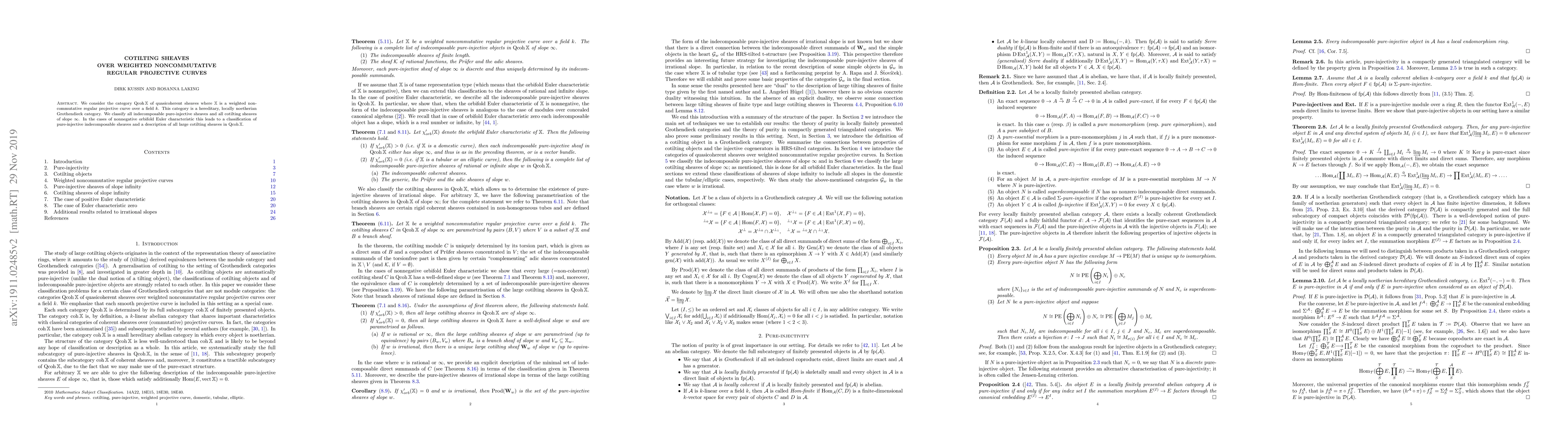 This paper classifies indecomposable pure-injective sheaves and cotilting sheaves of slope $\infty$ in the category of quasicoherent sheaves over weighted noncommutative regular projective curves. It provides a comprehensive description of these objects when the orbifold Euler characteristic is nonnegative.