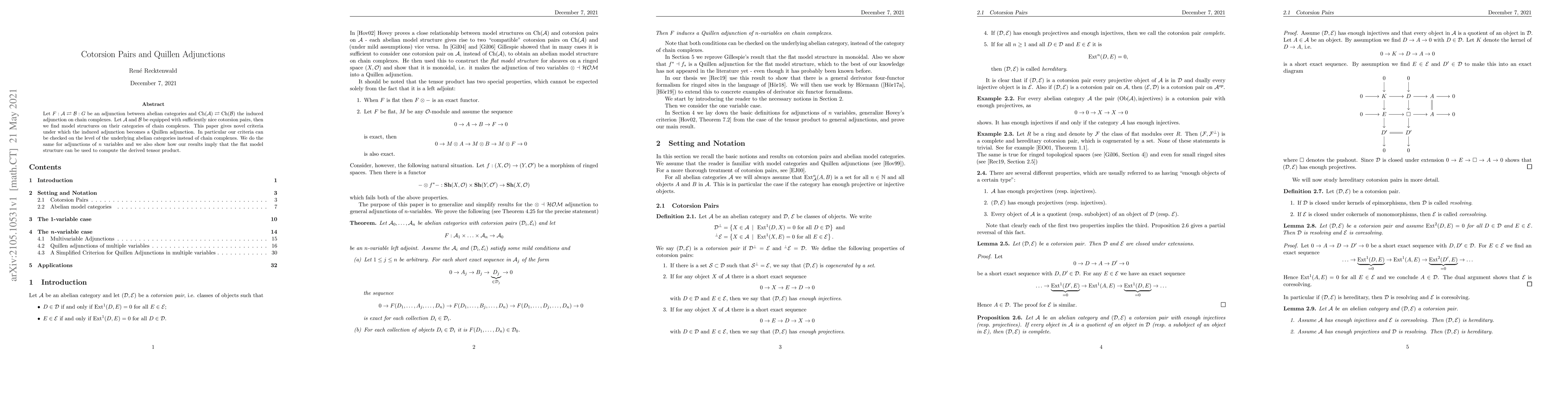 Let $F:\mathcal{A}\to \mathcal{B}$ be a left adjoint between abelian categories and let $Ch(F)$ be the induced left adjoint on chain complexes. If the abelian categories $\mathcal{A}$ and $\mathcal{B}$ are equipped with sufficiently nice cotorsion pairs, then we find model structures on their categories of chain complexes. This paper gives novel criteria under which the induced adjunction becomes a Quillen adjunction. In particular, our criteria can be checked on the level of the underlying abelian categories instead of chain complexes. We do the same for adjunctions of $n$ variables and we also show how our results imply that the flat model structure can be used to compute the derived tensor product.