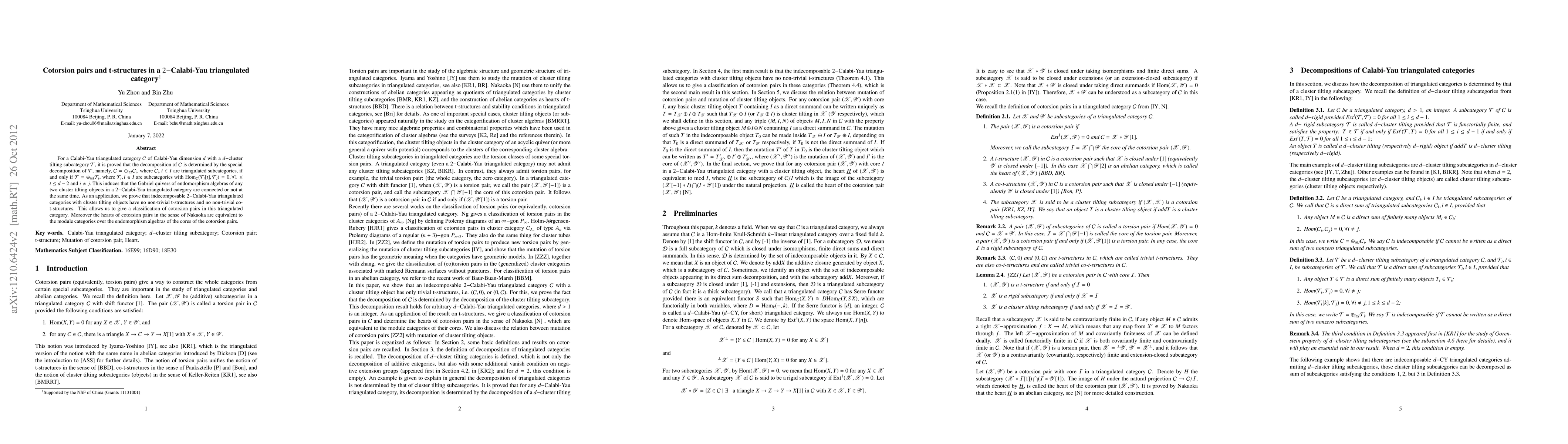 The paper proves that the structure of a $2$-Calabi-Yau triangulated category $\mathcal{C}$ is governed by its $d$-cluster tilting subcategory $\mathcal{T}$. It establishes that $\mathcal{C}$ decomposes into triangulated subcategories if and only if $\mathcal{T}$ does, under specific homological conditions. The study also shows that indecomposable $2$-Calabi-Yau categories with cluster tilting objects lack non-trivial t-structures and co-t-structures, leading to a classification of cotorsion pairs in $\mathcal{C}$.