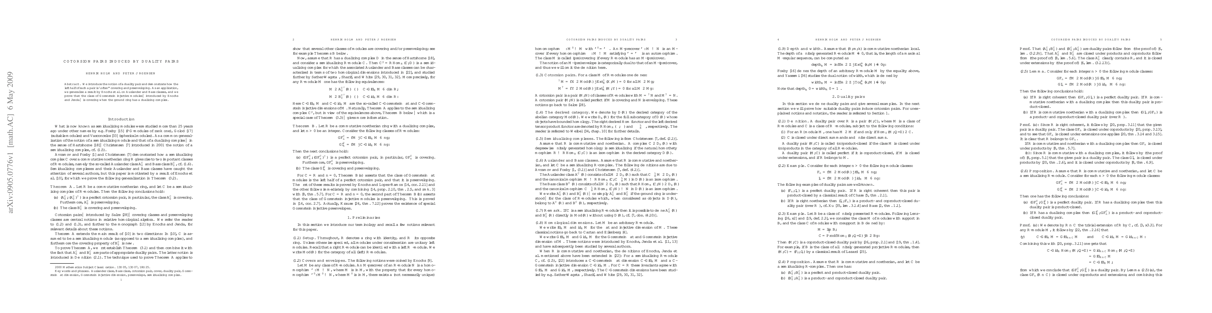 We introduce the notion of a duality pair and demonstrate how the left half of such a pair is often covering and preenveloping. As an application, we generalize a result by Enochs et al. on Auslander and Bass classes, and we prove that the class of Gorenstein injective modules introduced by Enochs and Jenda is covering when the ground ring has a dualizing complex.