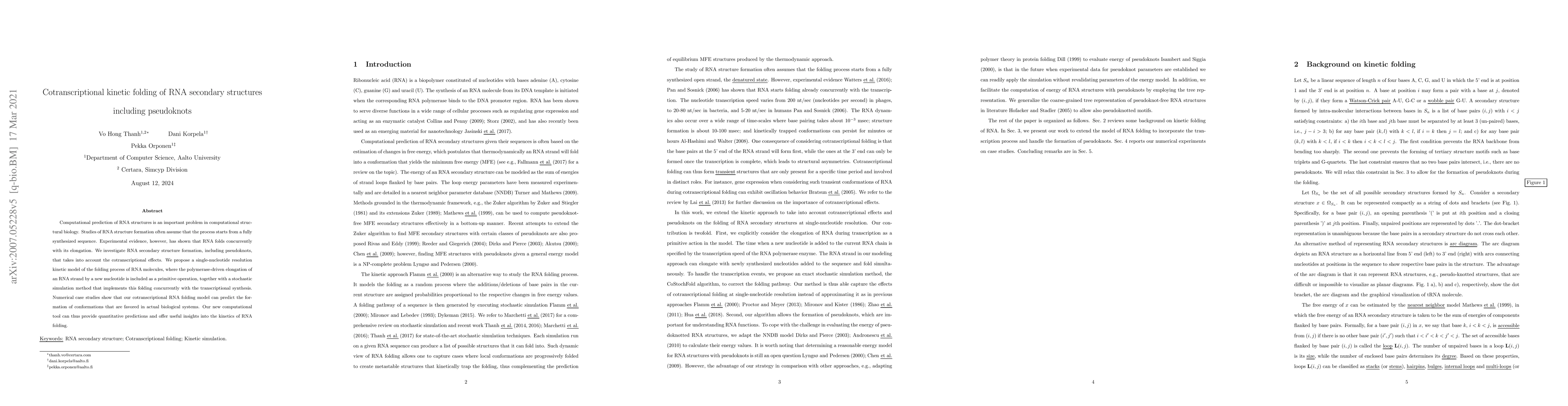 This paper proposes a kinetic model for RNA secondary structure formation, including pseudoknots, that considers cotranscriptional folding during RNA synthesis. The model incorporates polymerase-driven elongation and uses a stochastic simulation to predict RNA folding concurrently with transcription, offering insights into the kinetics of RNA folding.