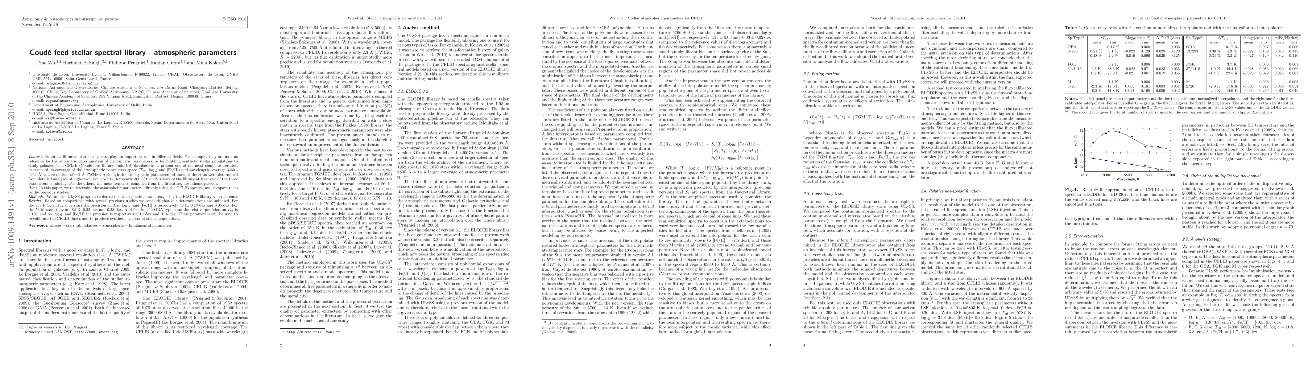 This paper re-determines atmospheric parameters (Teff, log g, [Fe/H]) for stars in the CFLIB using the ULySS program, comparing results to previous studies. The new determinations show high precision, especially for F,G, and K type stars, and will improve CFLIB's calibration and synthetic stellar population models.