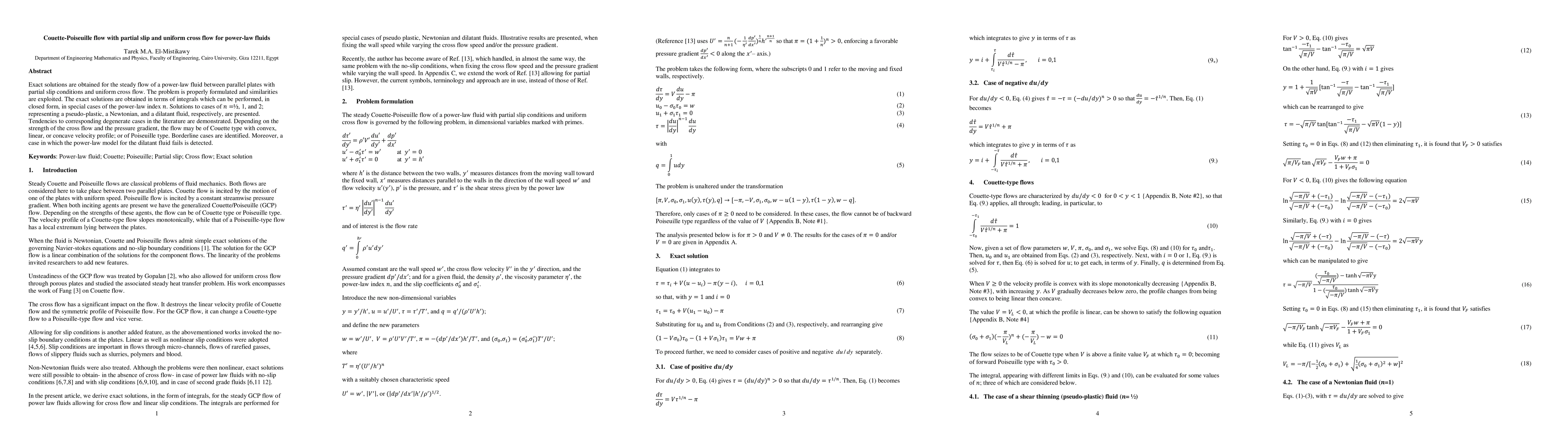 This paper presents exact solutions for the steady flow of power-law fluids between parallel plates under partial slip conditions and uniform cross flow. Solutions for pseudo-plastic, Newtonian, and dilatant fluids are derived, highlighting the influence of cross flow and pressure gradient on velocity profiles.