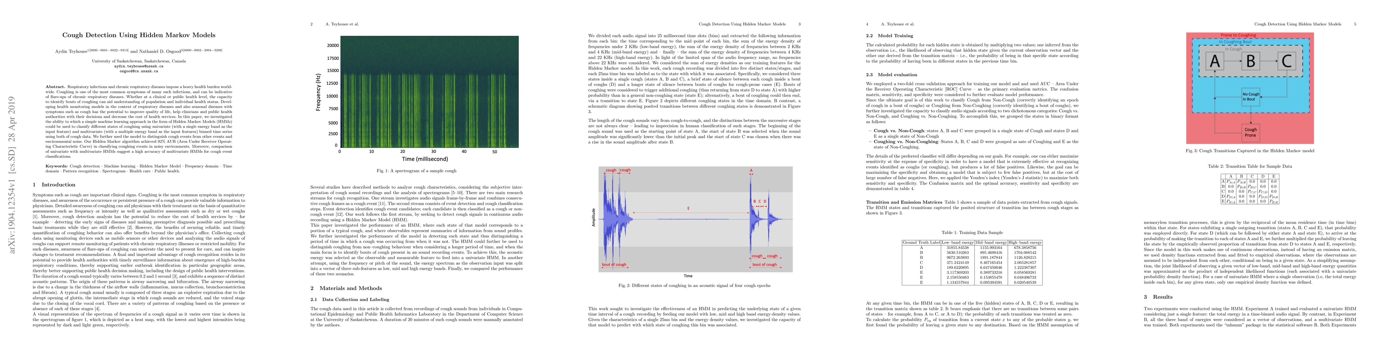 This paper explores the use of Hidden Markov Models (HMMs) to classify coughing events in respiratory health monitoring, achieving 92% accuracy in noisy environments. It compares univariate and multivariate HMMs, finding that multivariate models provide higher accuracy for cough event classification.