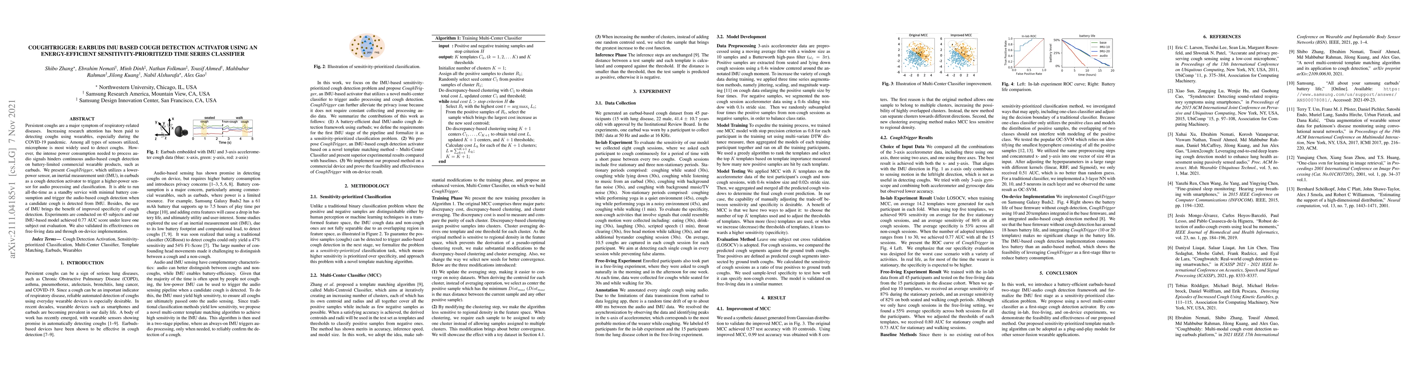 CoughTrigger employs earbuds' IMU sensors for low-power cough detection, triggering higher-power audio processing only when a cough is detected, thus conserving battery life. The system achieved a 0.77 AUC score in experiments and demonstrated effectiveness in real-world conditions.