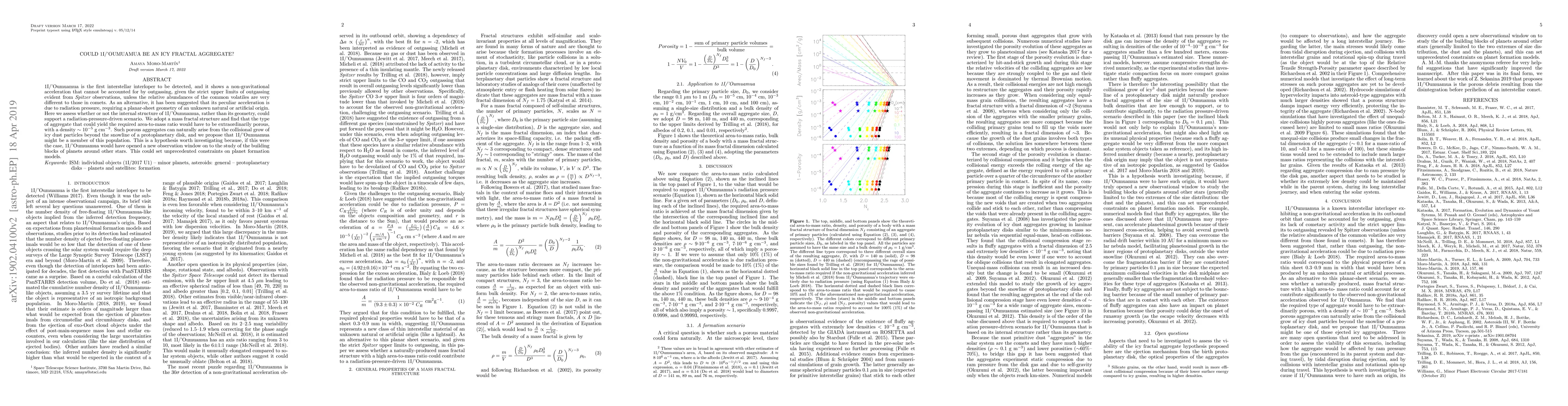 The paper proposes that 1I/'Oumuamua, the first detected interstellar object, could be an extraordinarily porous icy fractal aggregate formed beyond the snowline in a protoplanetary disk, offering an alternative to radiation pressure acceleration. This hypothesis could provide new insights into planet formation models around other stars.