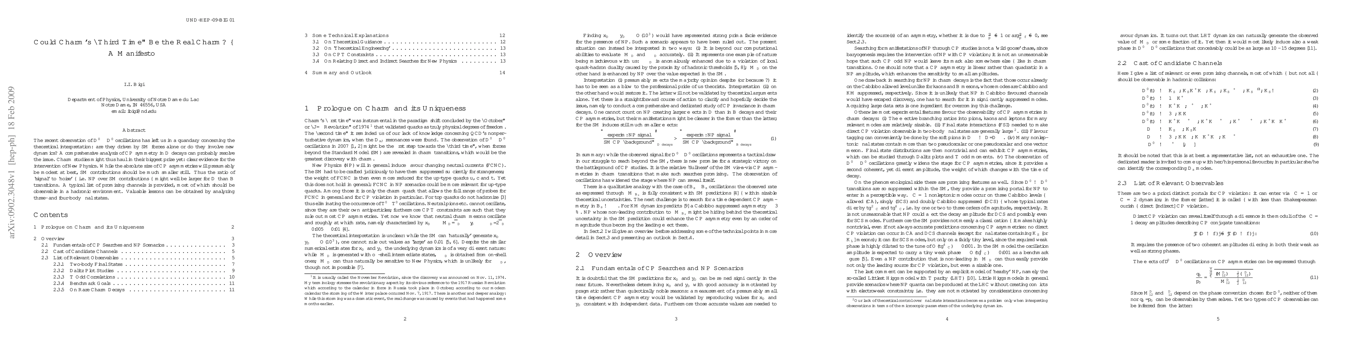 The recent observation of $D^0 - \bar D^0$ oscillations has left us in a quandary concerning the theoretical interpretation: are they driven by SM forces alone or do they involve new dynamics? A comprehensive analysis of \cp symmetry in $D$ decays can probably resolve the issue. Charm studies might thus haul in their biggest prize yet: clear evidence for the intervention of New Physics. While the absolute size of \cp asymmetries will presumably be modest at best, SM contributions should be much smaller still. Thus the ratio of `signal' to `noise' -- i.e. NP over SM contributions -- might well be larger for $D$ than $B$ transitions. A typical list of promising channels is provided, most of which should be observable in a hadronic environment. Valuable lessons can be obtained by analyzing three- and four-body final states.