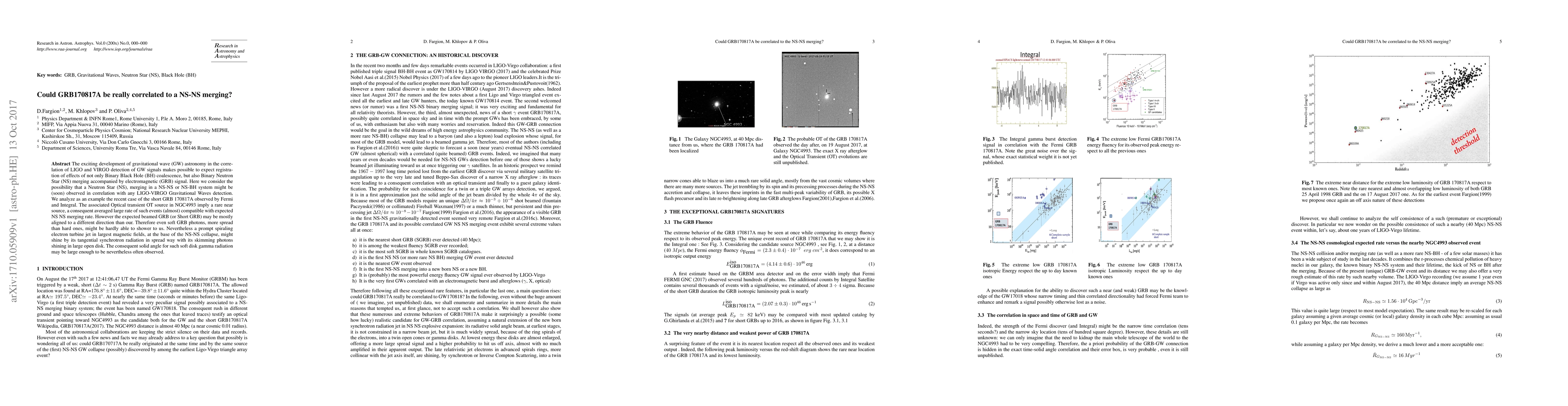 This paper explores the possibility of GRB170817A being linked to a Neutron Star (NS)-NS merging event, considering the recent LIGO-VIRGO GW detections. It suggests that a NS merging in an NS-NS or NS-BH system could be observable with associated electromagnetic signals. Despite potential misalignment of the beamed GRB, a spreading synchrotron radiation from a turbine jet at the NS-NS collapse base might explain the observed soft gamma radiation.