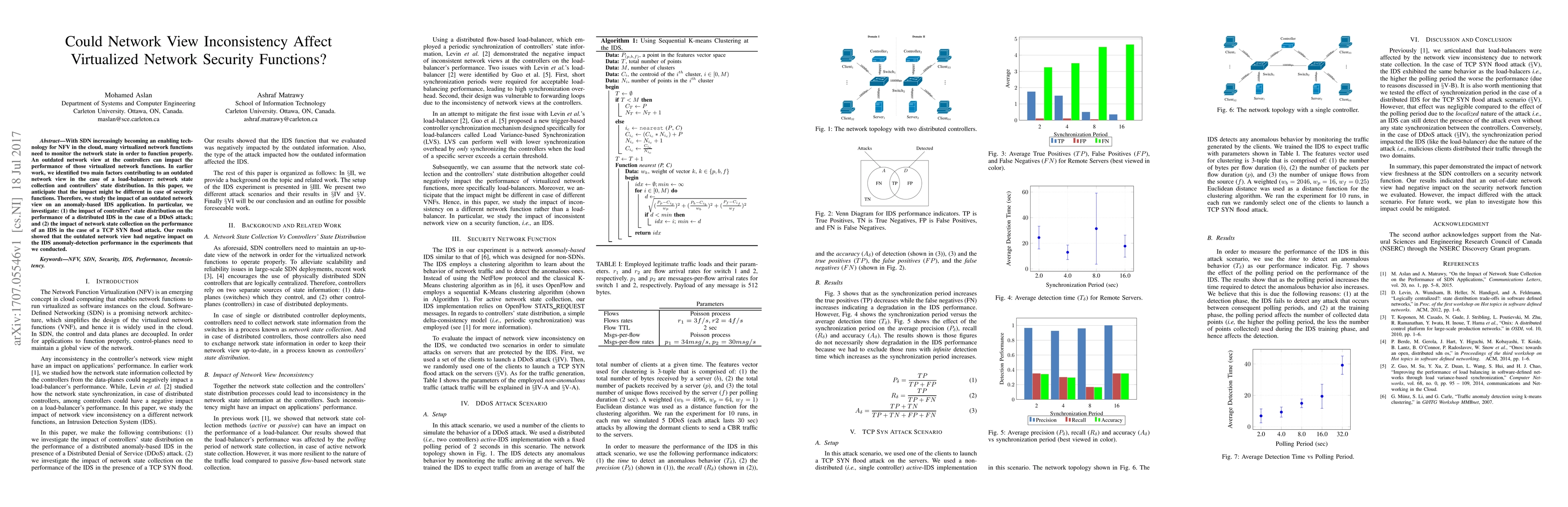 This paper investigates the impact of network view inconsistency on the performance of security functions in virtualized networks, specifically focusing on an anomaly-based Intrusion Detection System (IDS). The study finds that outdated network views due to issues in state collection and distribution can negatively affect the IDS's ability to detect anomalies, particularly during DDoS and TCP SYN flood attacks.
