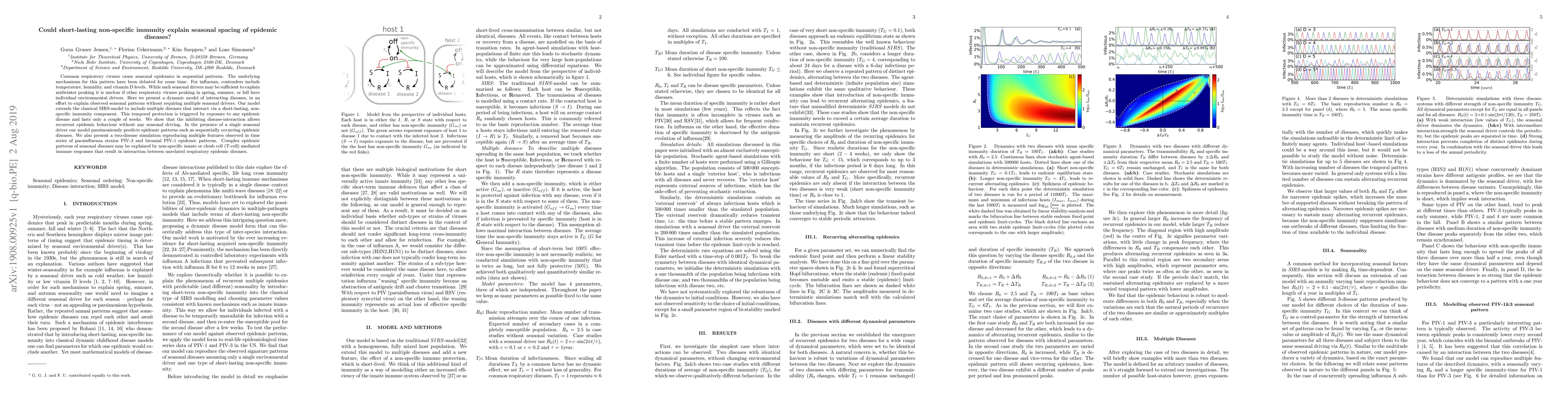 This paper proposes a dynamic model to explain the seasonal spacing of epidemic diseases using short-lasting non-specific immunity, which interacts among diseases without requiring multiple seasonal drivers. The model successfully predicts observed epidemic patterns and reproduces features of parainfluenza strains.